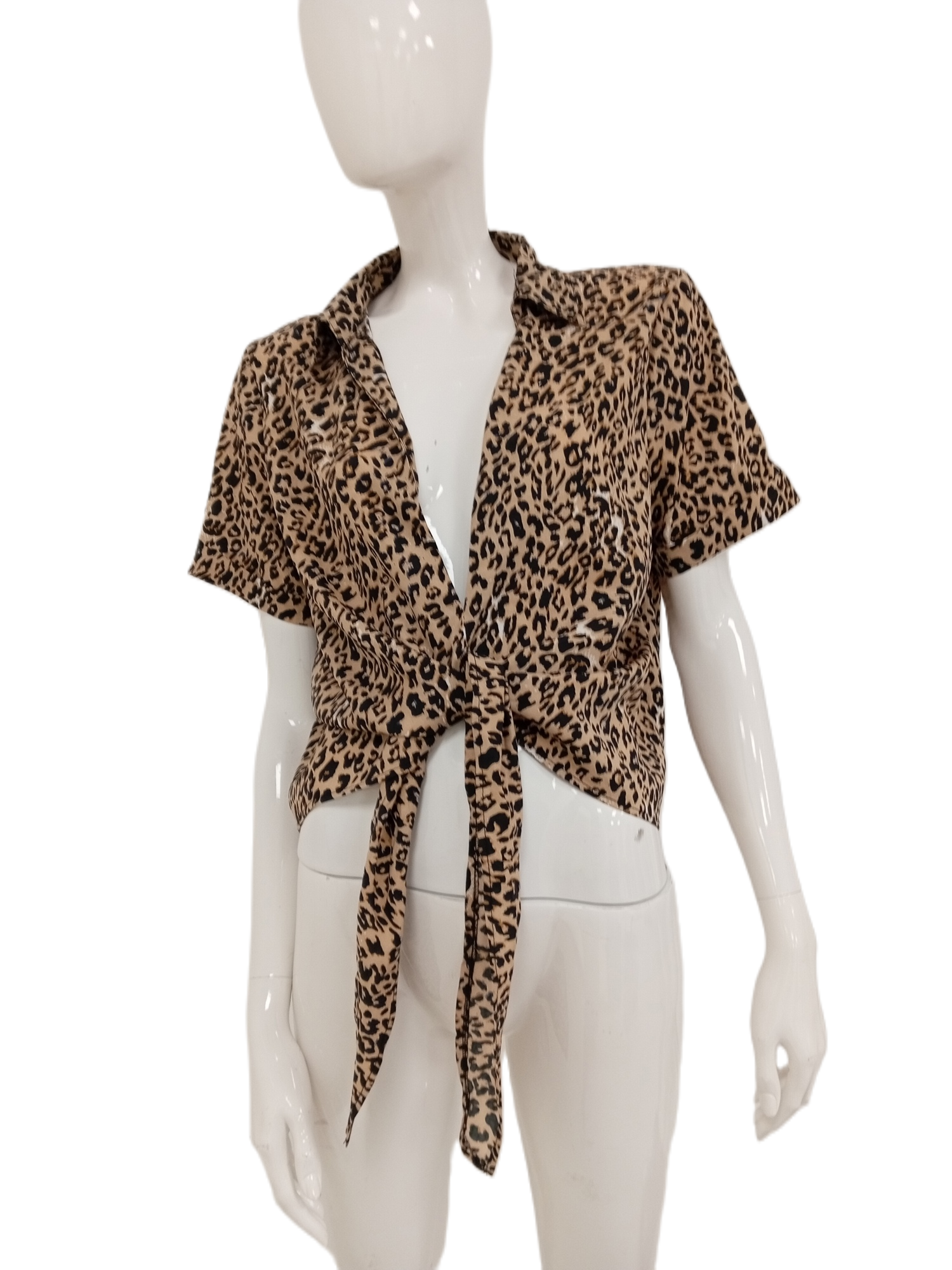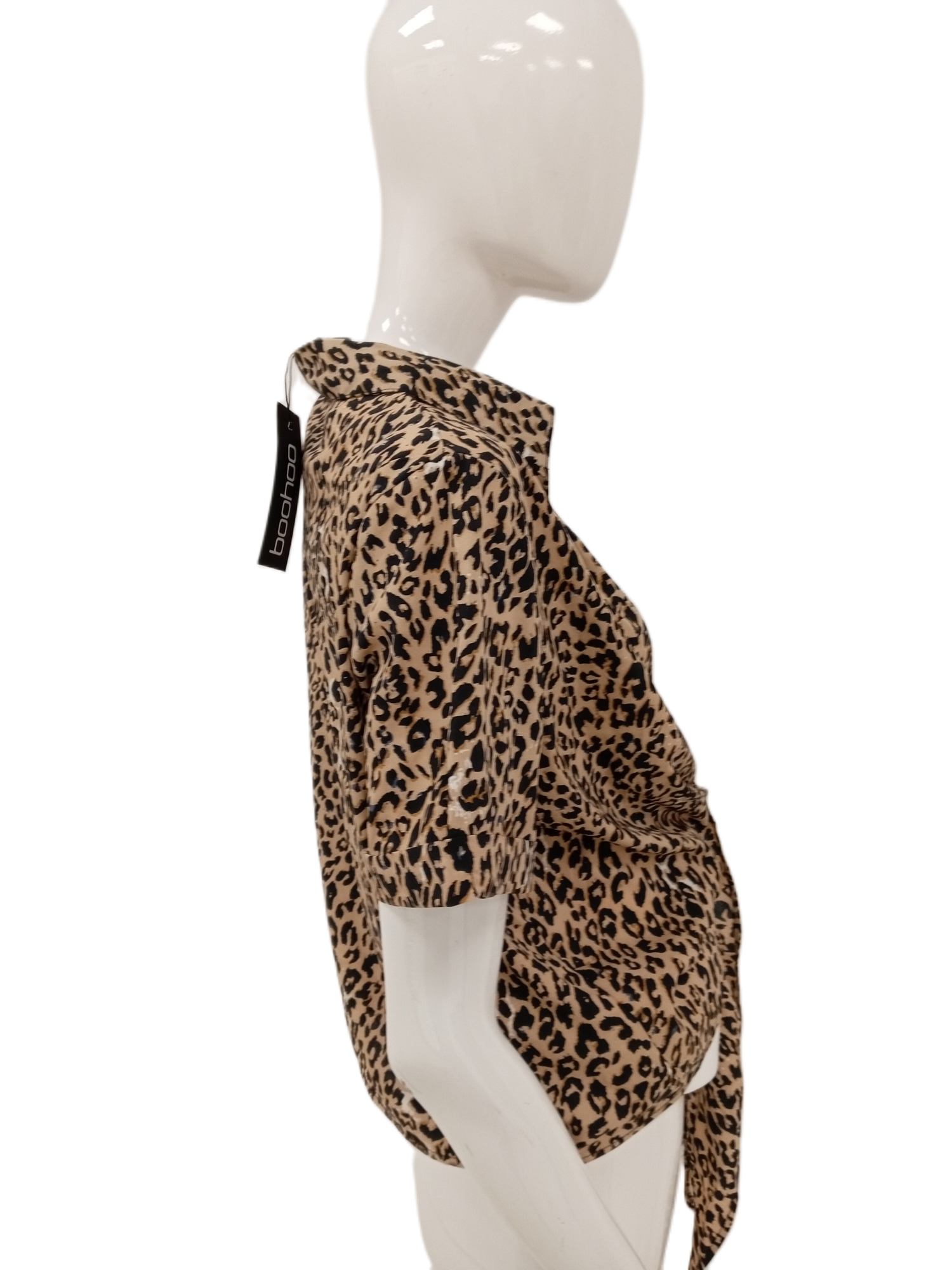 Boohoo Ladies Leopard Print Tie-Up Detail Top