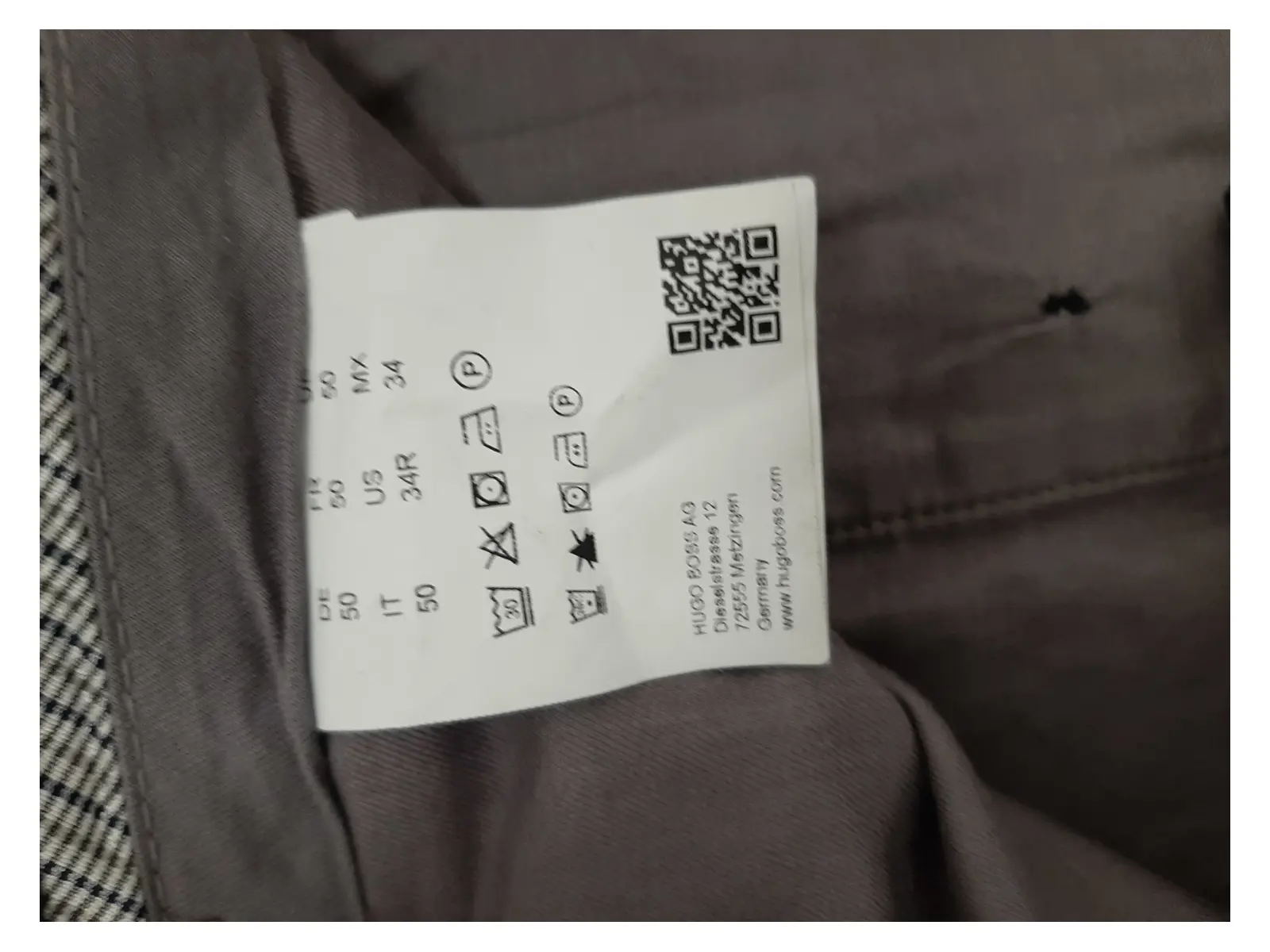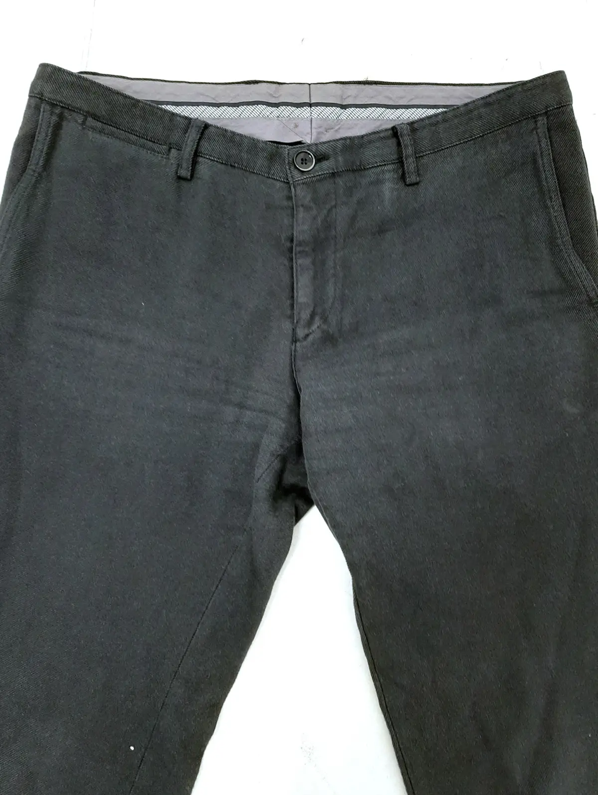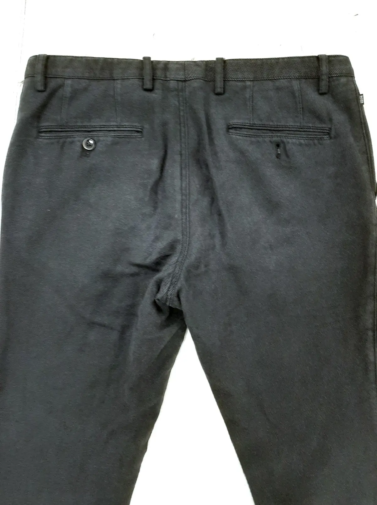 BOSS HUGO BOSS Men's Charcoal Grey Twill Slim Fit Trousers Size 35W Pre-Loved