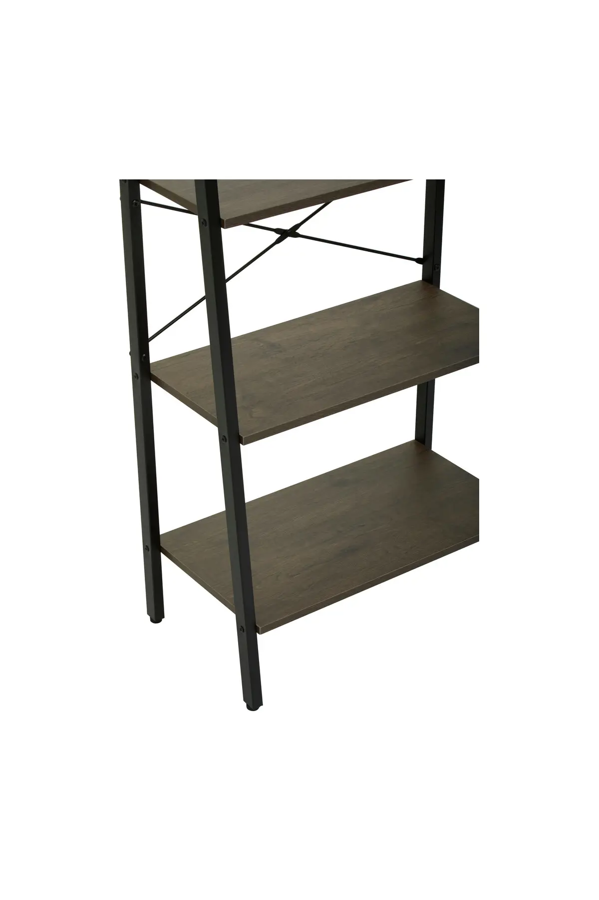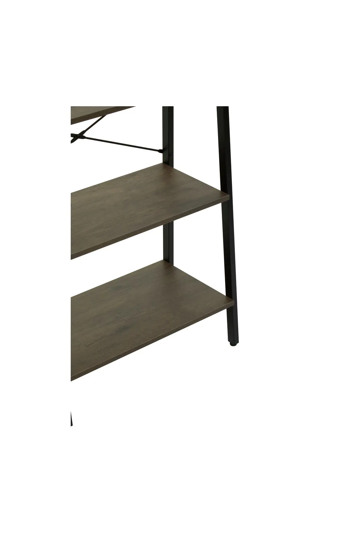 Bring style and smart organisation to your home with the Bradbury Five Tier Oak Veneer Ladder Shelves. Combining rich dark oak veneer shelves with a sleek black metal frame, this contemporary ladder style unit adds warmth and character while making the most of vertical space.