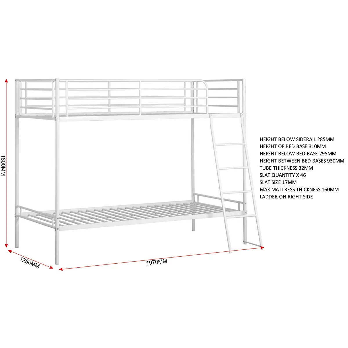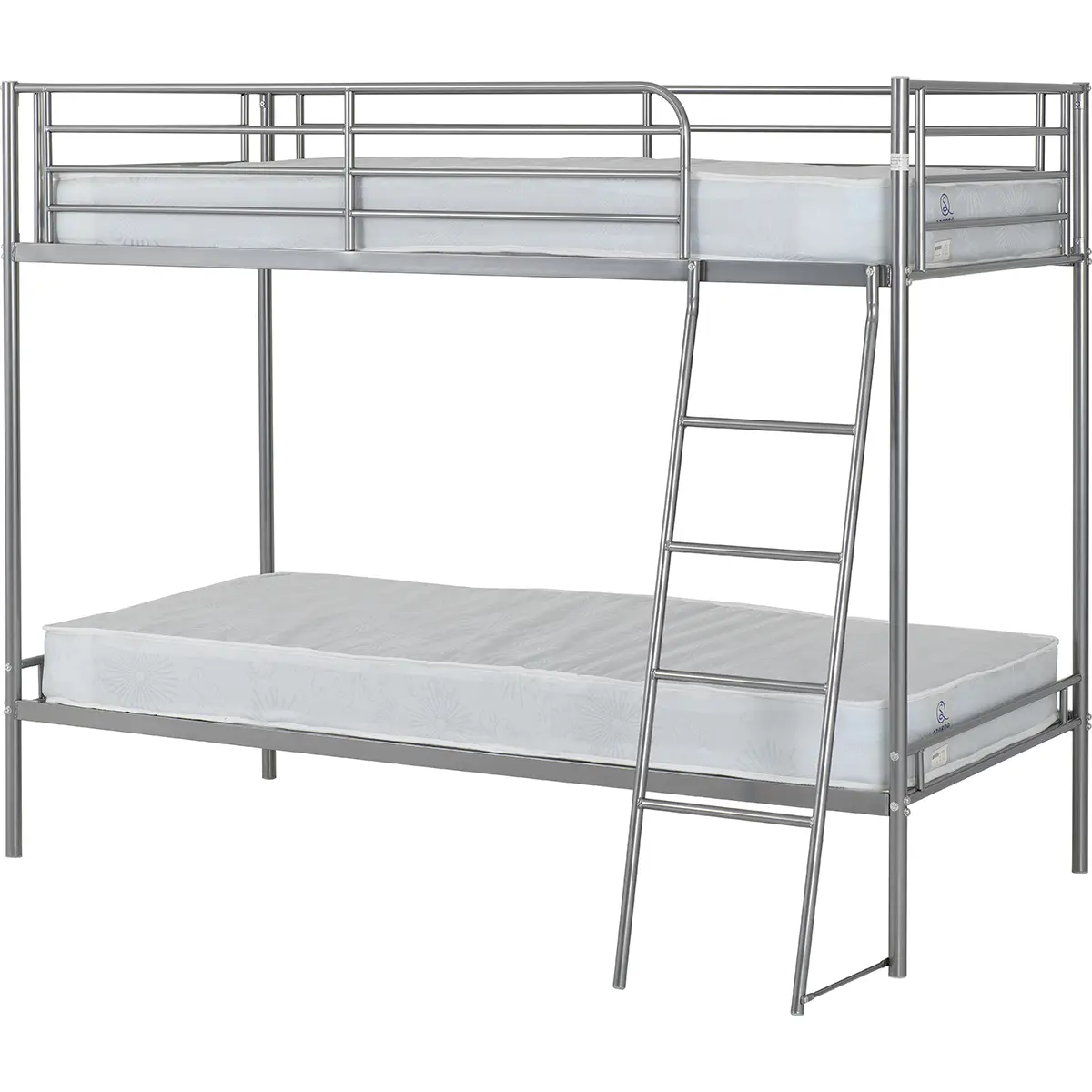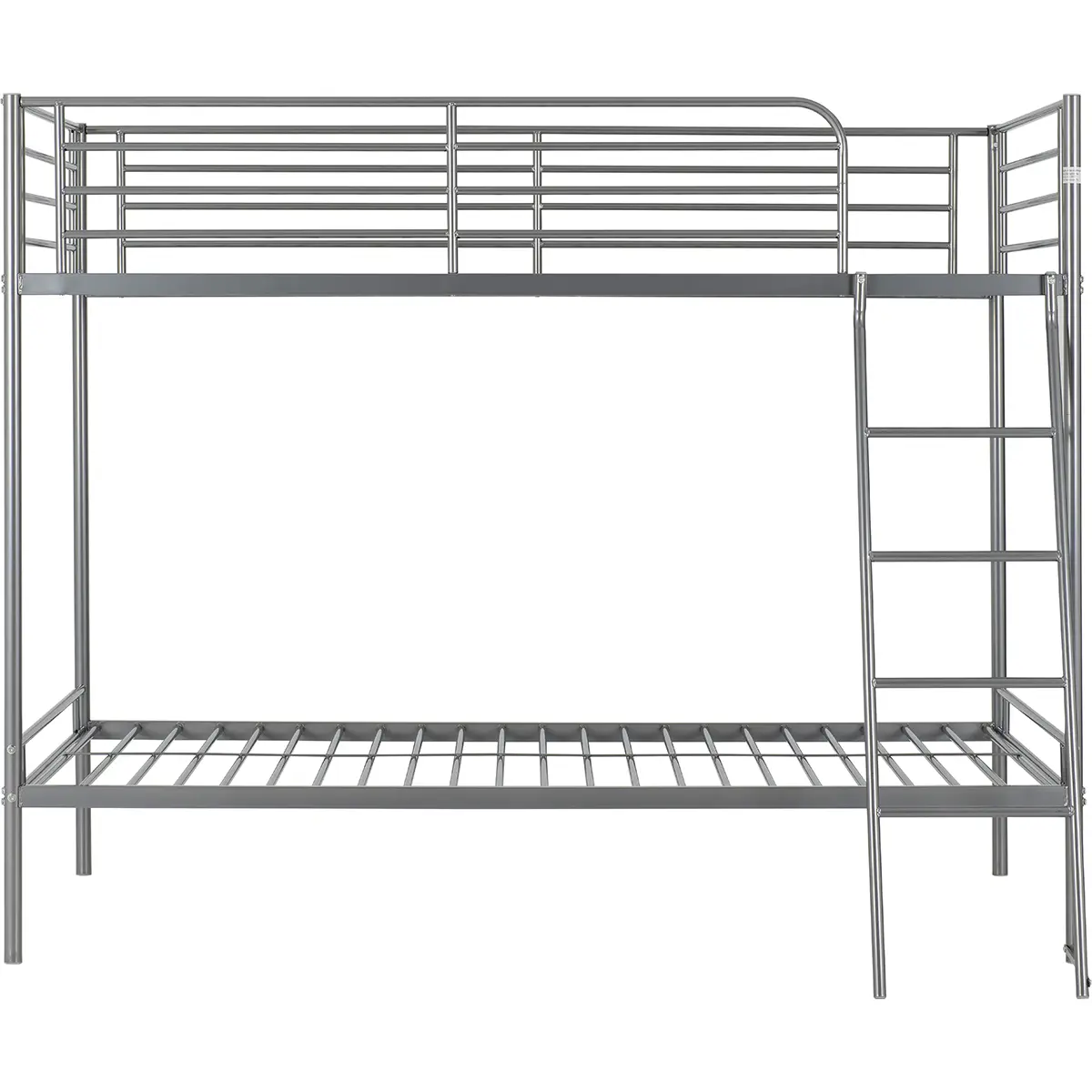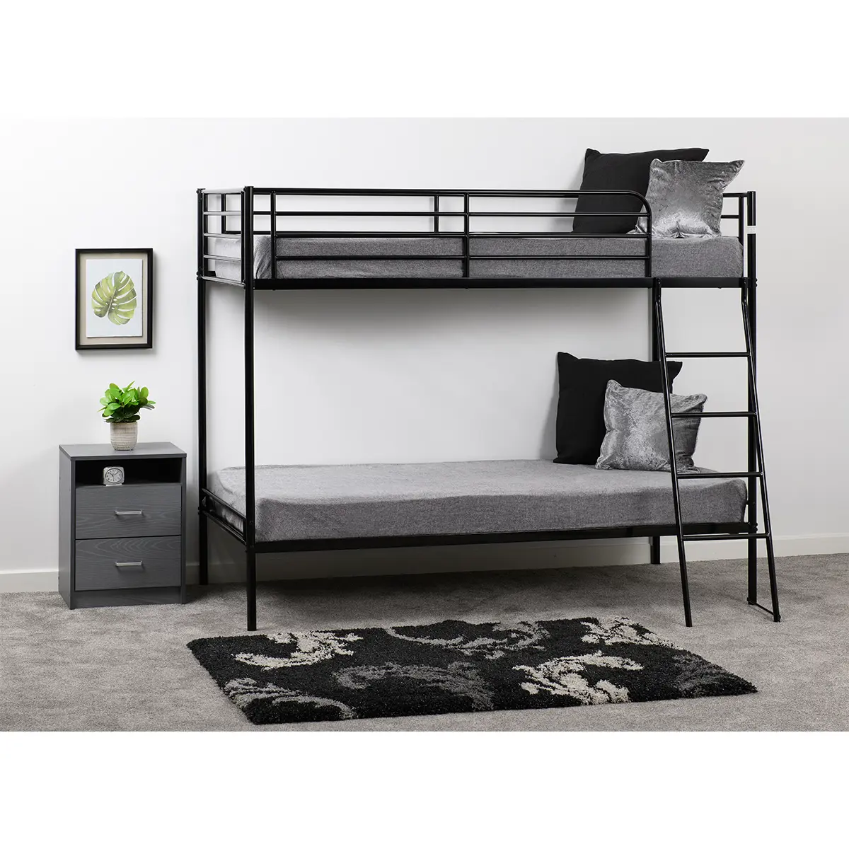 The Brandon Bunk Bed is a smart, space-saving solution for modern homes. Designed to maximise functionality without compromising style, it features a sleek and contemporary metal frame that blends seamlessly with any décor. Crafted from high-quality materials, this bunk bed offers durability and stability for years of use. Safety and convenience are built in, with full-length guard rails on the top bunk for added security and an integrated ladder for easy access. Perfect for guest rooms, shared spaces, or vacation homes, the Brandon Bunk Bed provides ample sleeping space while helping you make the most of your floor area. Available in Black or Silver, it’s a versatile and stylish choice for any setting.