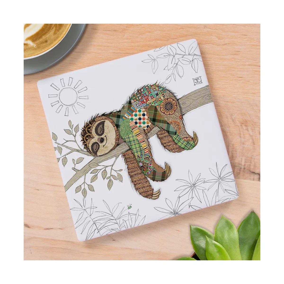 Slow down and enjoy your tea or coffee with the Bug Art Simon the Sloth Mug & Coaster Set, part of the charming ‘Kooks’ collection by Jane Crowther. Featuring the laid-back Simon the Sloth in a beautifully detailed patchwork-style illustration, this delightful set adds colour, character, and gentle humour to everyday moments.