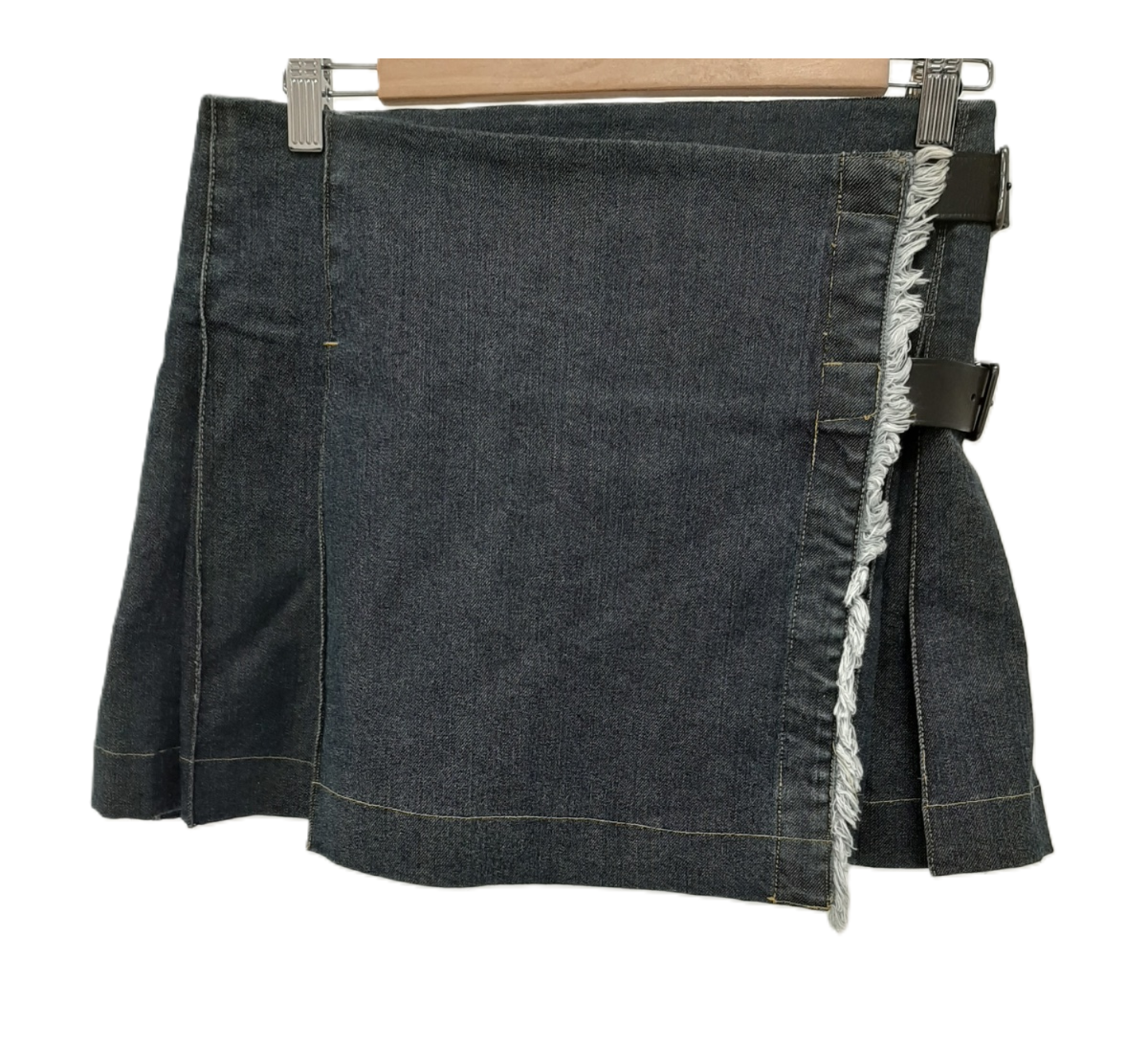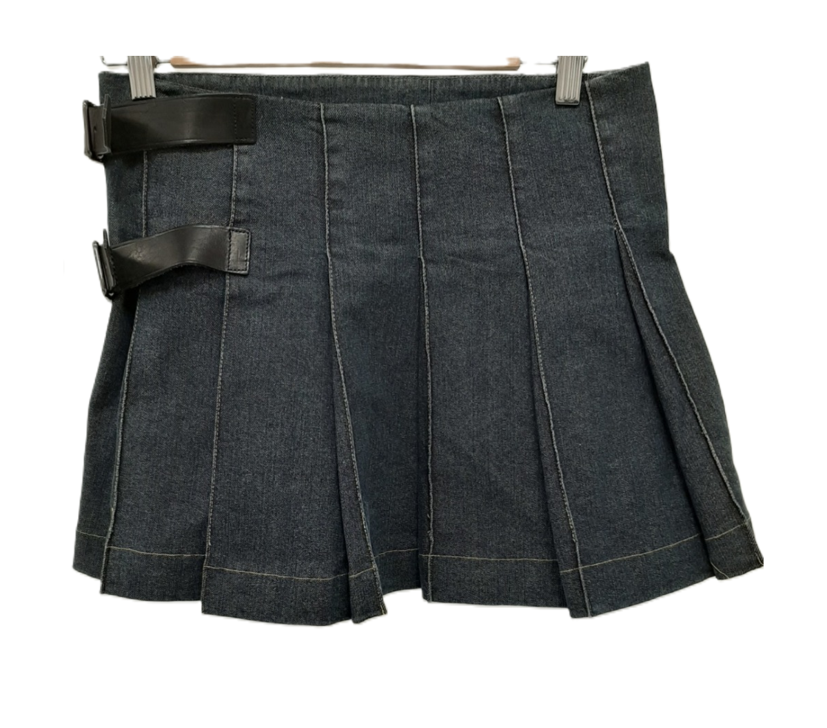 Women's Denim Pleated Kilt Skirt Adjustable Belted Waist Pre-Loved