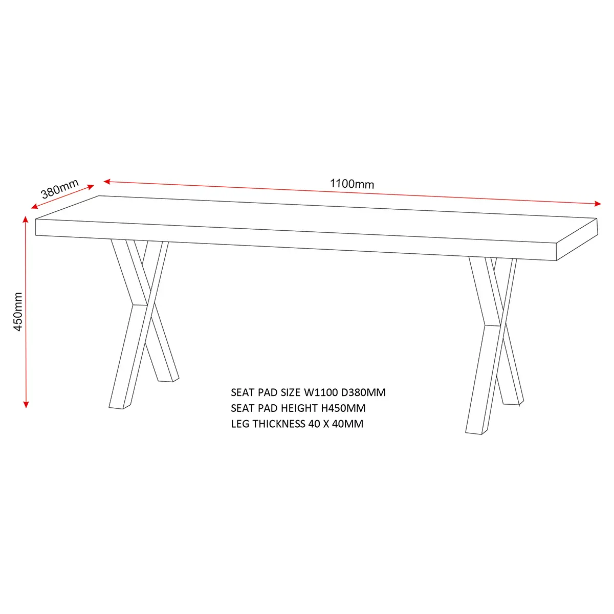 Chair Assembled Dimensions: Width: 110 x Depth: 38 x Height: 45 (cm)