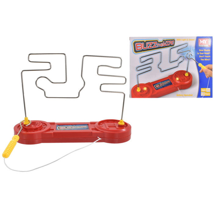 Can you avoid the wire! You need a steady hand for this game - complete the course without setting off the buzzer to win! 1-2 player game of dexterity and skill, navigate the circuit without the metal hoop without making contact! Great fun for adults and children alike. Requires 2x AA Batteries (Not included) Suitable for ages 3+