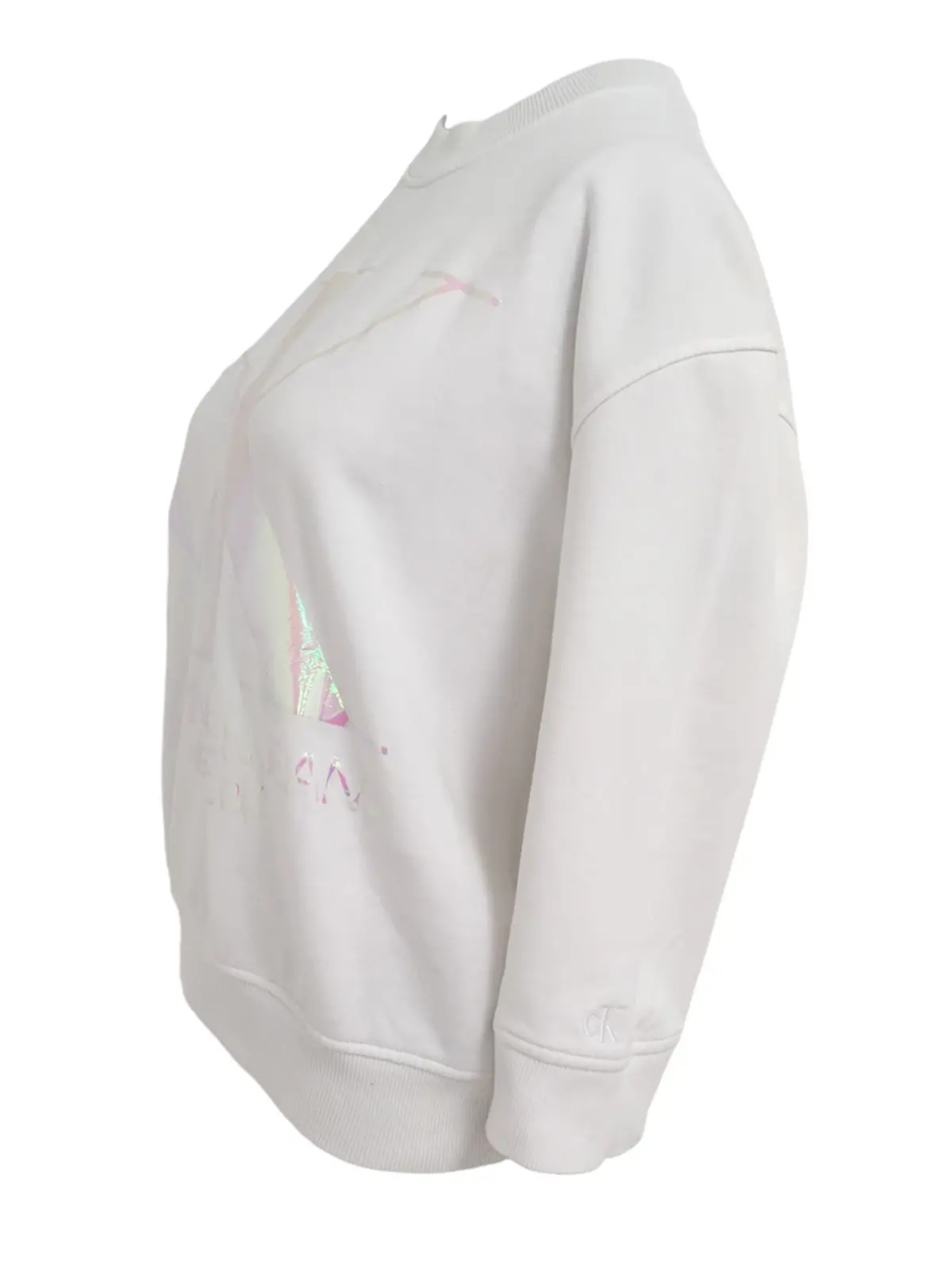 This CALVIN KLEIN JEANS white jumper combines casual elegance with a touch of iconic style, making it a versatile piece for your wardrobe. Designed with 3/4 sleeves, it’s perfect for layering or wearing on its own for a classic look.