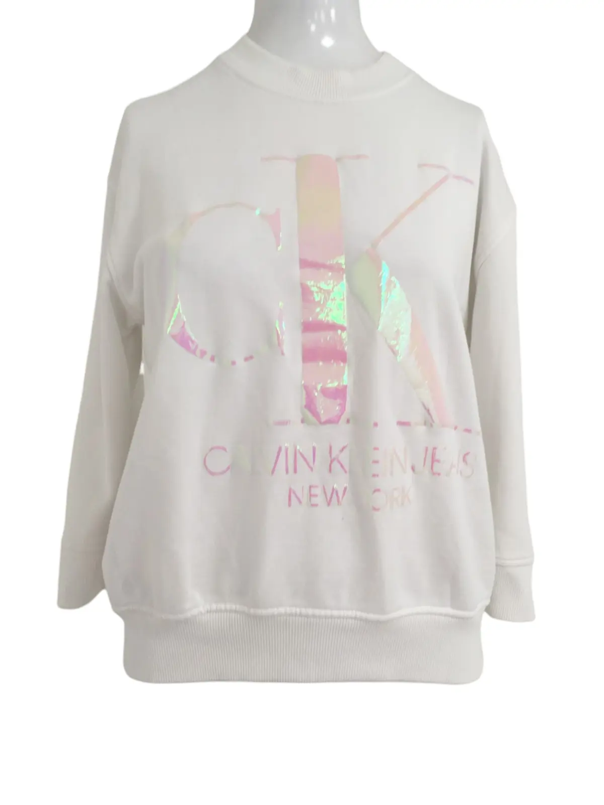 CALVIN KLEIN JEANS Ladies UK Size Medium White 3/4 Sleeved Jumper Pre-Loved