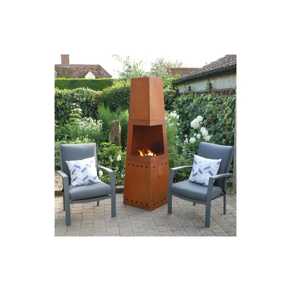 The Casa Mia Tempo Gas Chiminea is made from eye-catching Corten steel and created in an angular design to add flair to your outdoor space. Ideal for keeping you and your guests warm during colder days or nights, the chiminea is gas-powered and has a discreet storage compartment for a canister. It also has an in-built tripod and griddle for cooking. free cover worth £65.