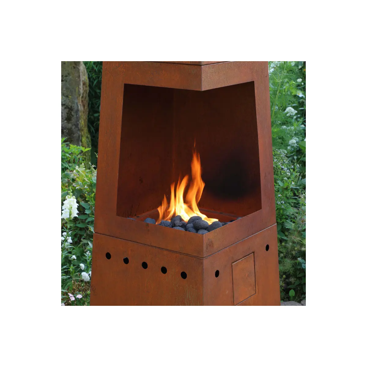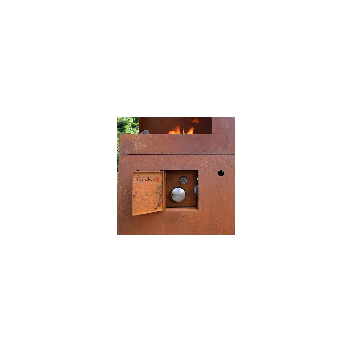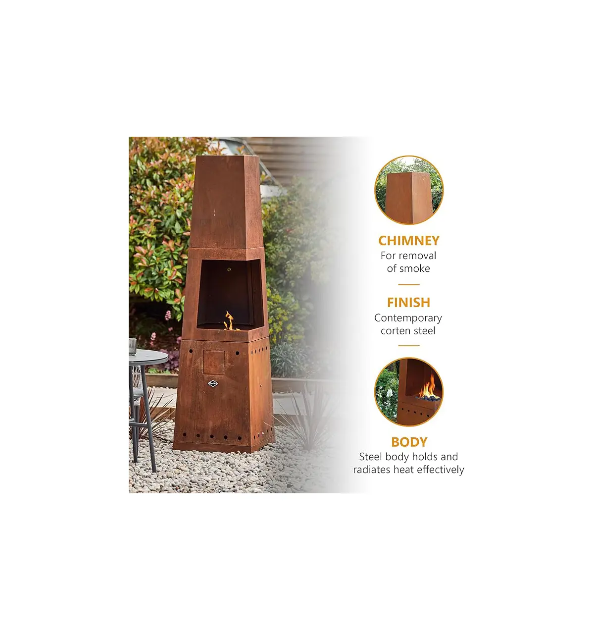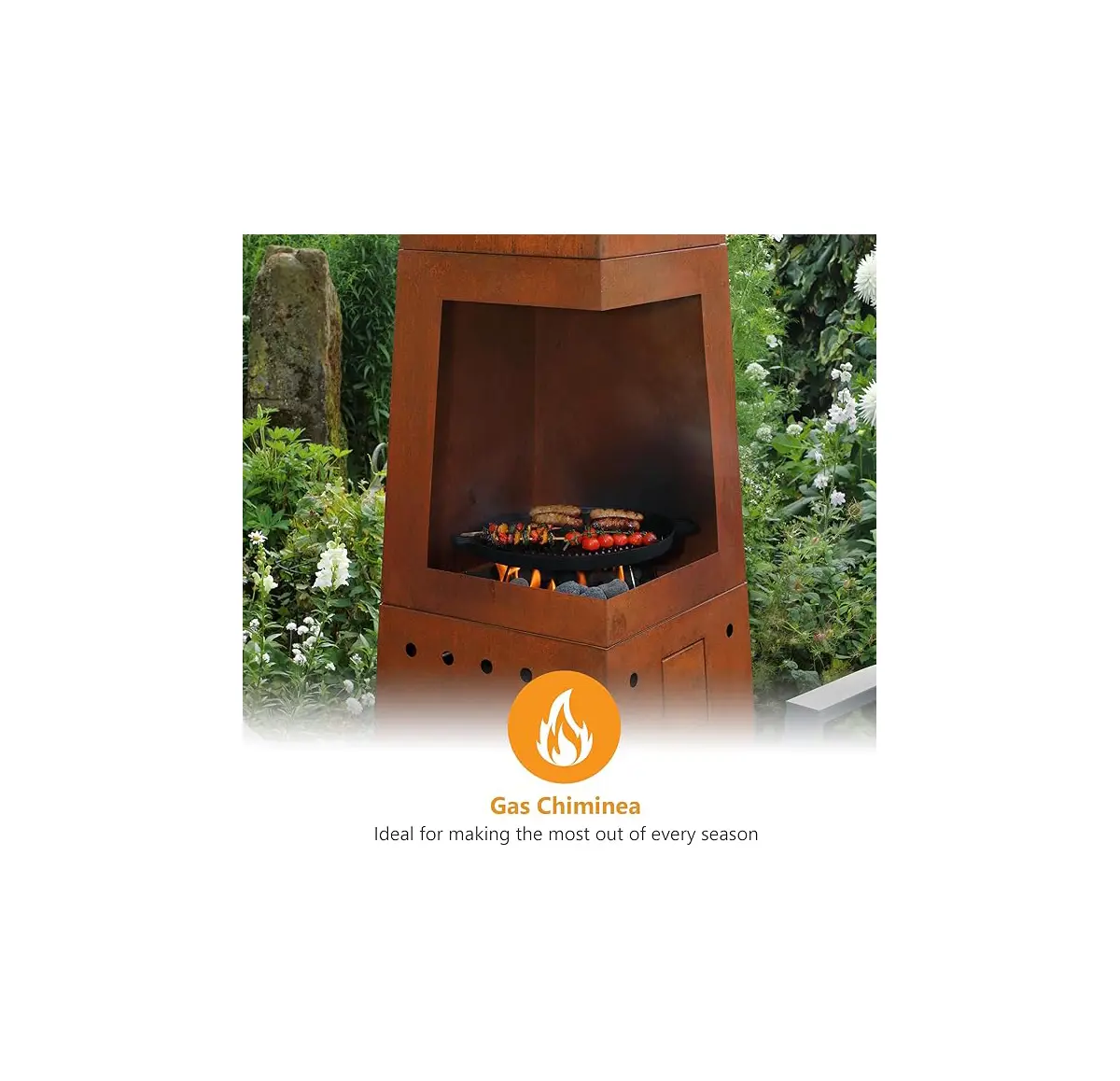 Casa Mia Tempo Gas Chiminea with Cooking Griddle & Cover Industrial Corten Steel Patio Heater and BBQ for Contemporary Gardens