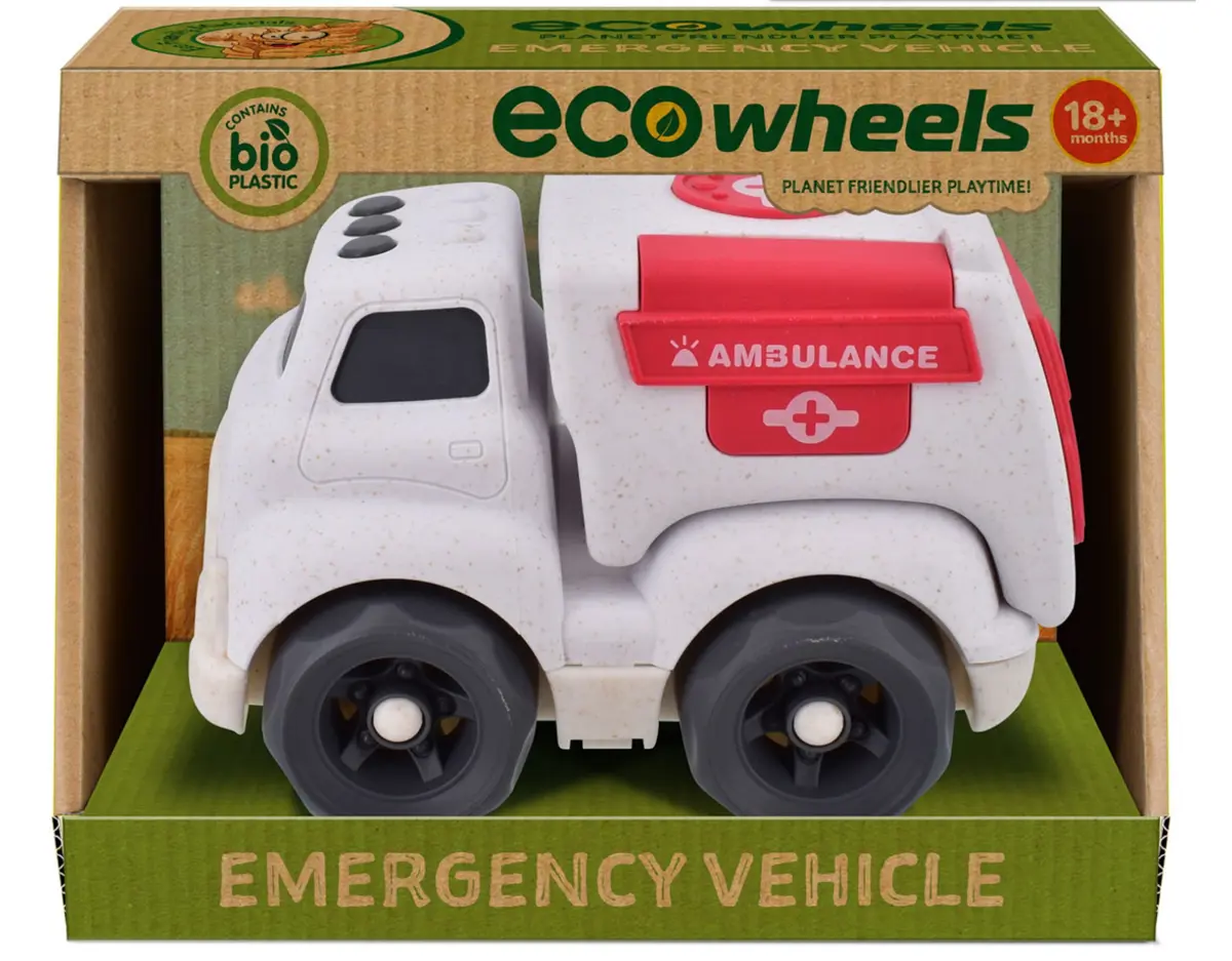The Eco Wheels Bioplastic range are sustainable and environmentally-friendly toy vehicles designed to entertain children while teaching them about the importance of being conscious of their ecological footprint. This eco-friendly toy is made entirely from bio-plastic, which is derived from renewable resources and does not contribute to plastic waste accumulation.
