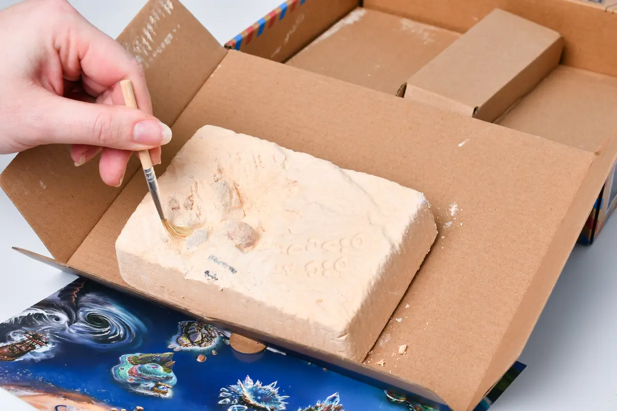 • Exciting Fossil Excavation: Kids can dig through the excavation block to uncover real fossil replicas, experiencing the thrill of being a palaeontologist