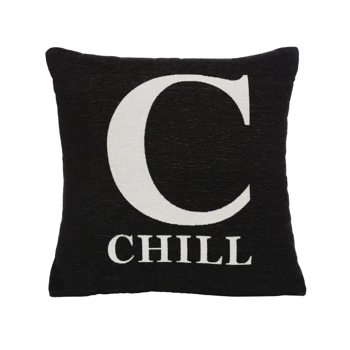 Made from 100% polyester with a chenille jacquard finish, the cushion feels wonderfully soft while the hollow fibre filling provides gentle support and comfort. The off white “chill” wording, with the letter “C” highlighted, stands out beautifully against the black background to create a stylish accent for a wide range of interiors.