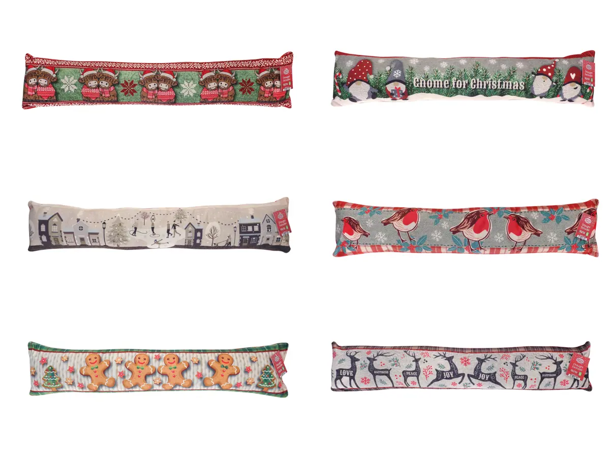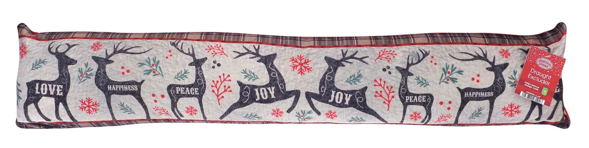 Add a playful touch to your festive décor with this Christmas Design Plush Draught Excluder. Featuring a line-up of jolly illustrations in seasonal colours, it brings a cheerful charm to your home while helping to keep cold draughts at bay. Ideal for placing at the bottom of doors or windows, it’s a cosy and whimsical addition to any room this winter.