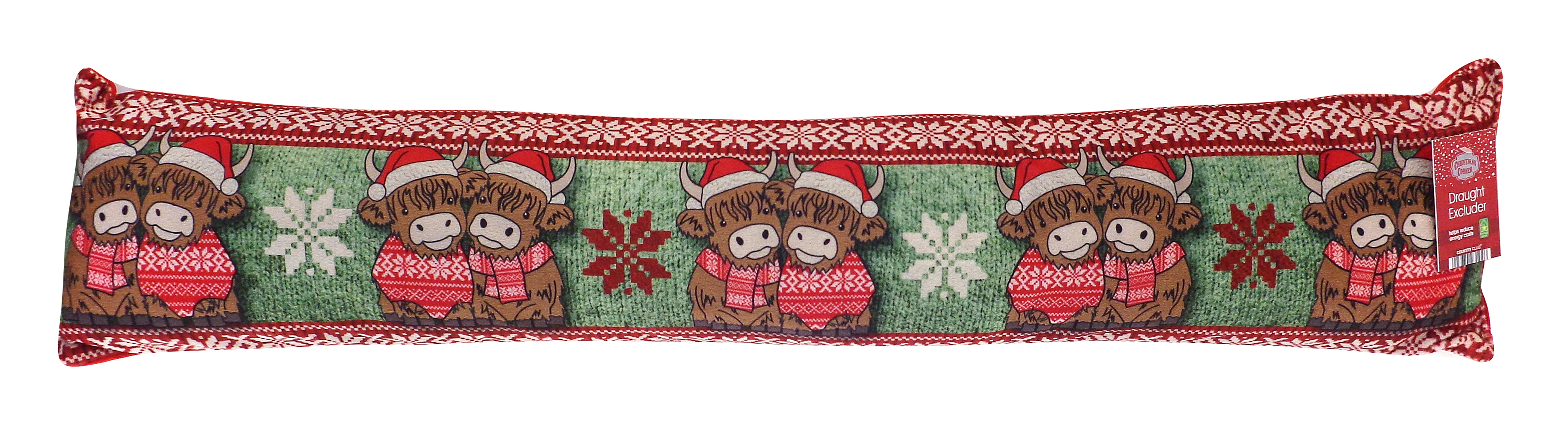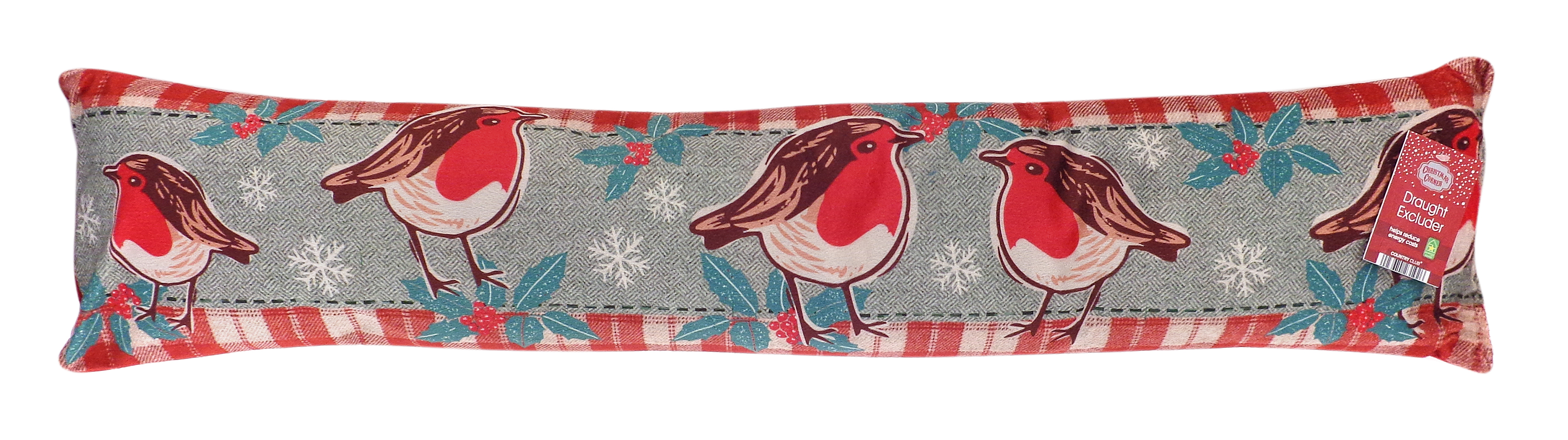• Each draught excluder has a plain red back to compliment the Christmas design