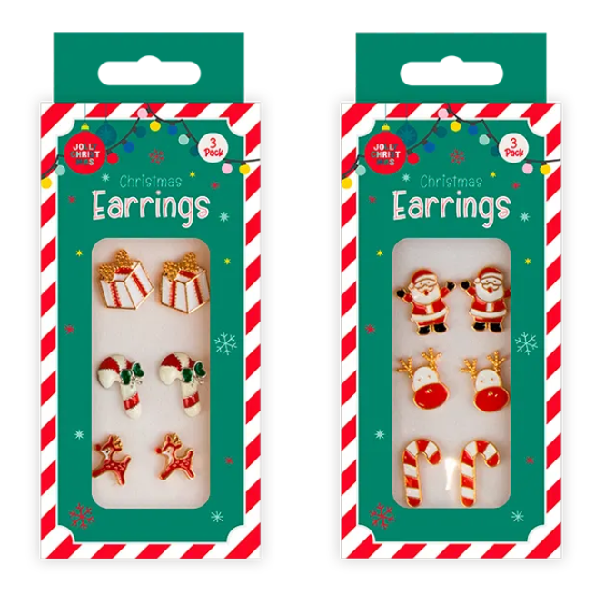Bring festive sparkle to your accessories with this delightful Christmas earring set. Featuring different Christmas designs including parcel, stocking, and reindeer designs, each pair is perfect for adding a joyful touch to your seasonal outfits, whether for parties, cosy gatherings, or everyday wear in the run-up to Christmas.