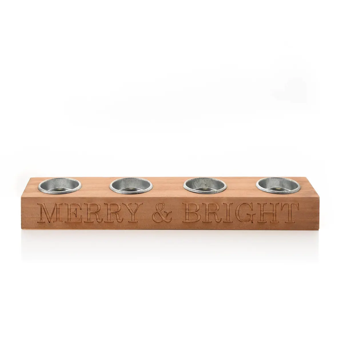 Christmas Pine Wood Merry & Bright Tea Light Holder