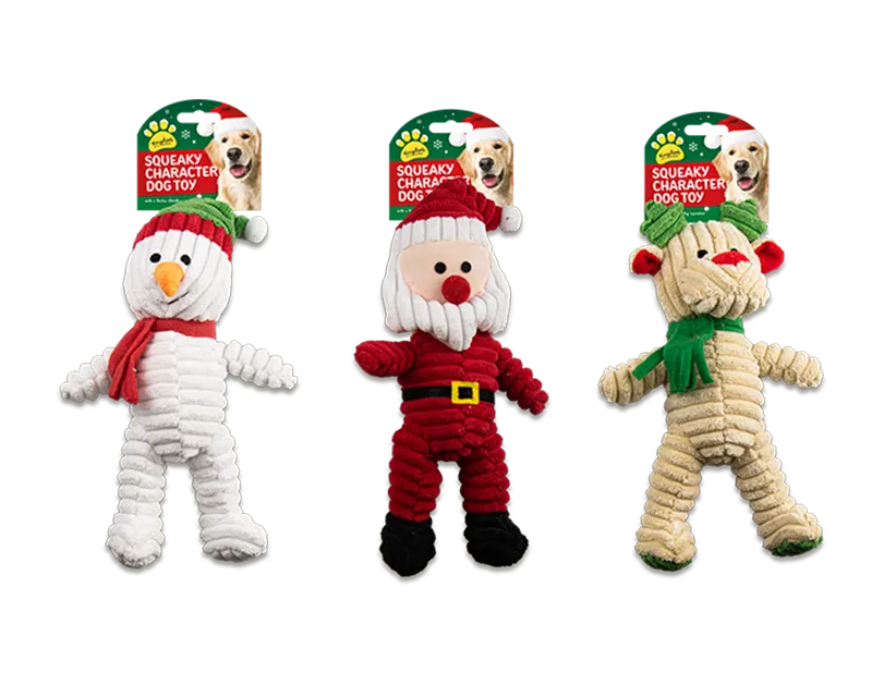 Keep tails wagging and dogs happy this Christmas with these squeaking character dog toys. Each one is bursting with festive charm, featuring a Christmas-themed character, a durable ribbed texture, and a fun squeaker to keep your furry friend entertained throughout the season.