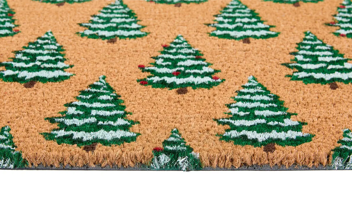 Give your doorstep a festive makeover with the Christmas Tree Coir Outdoor Festive Doormat. Featuring a charming display of snow-dusted Christmas trees adorned with red baubles, it sets a warm, seasonal tone and spreads holiday cheer before guests even step inside.