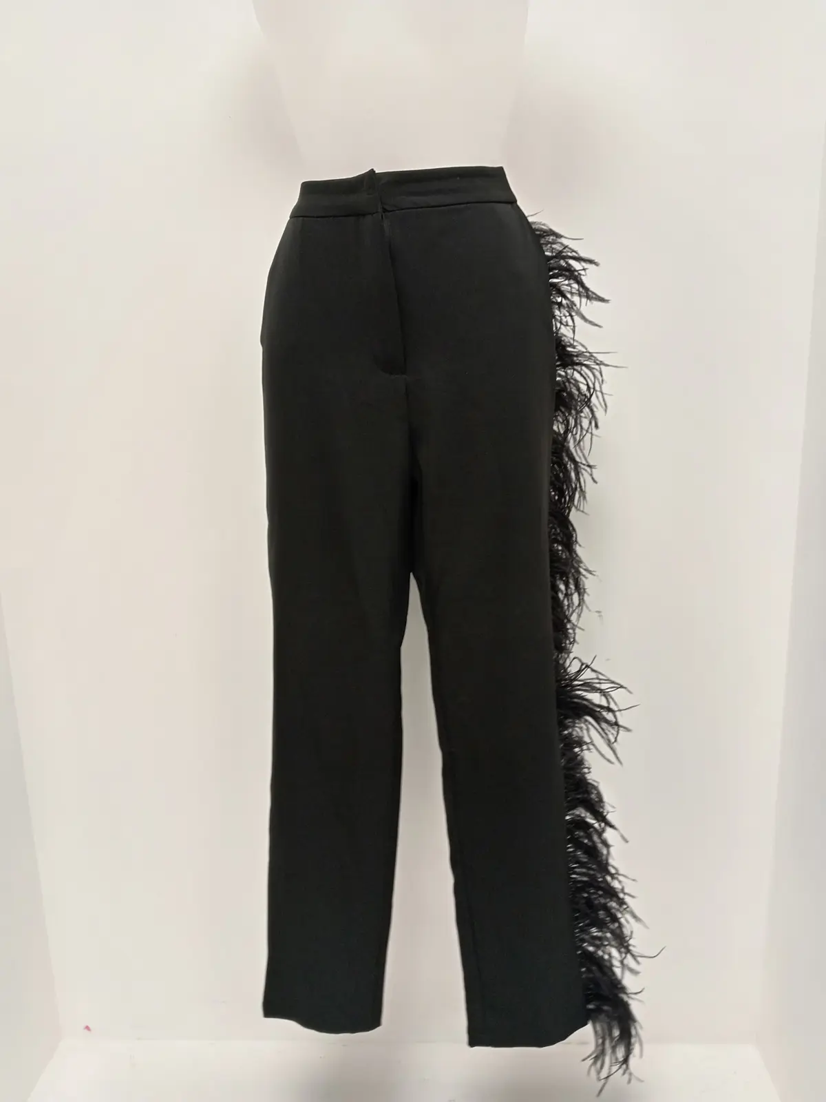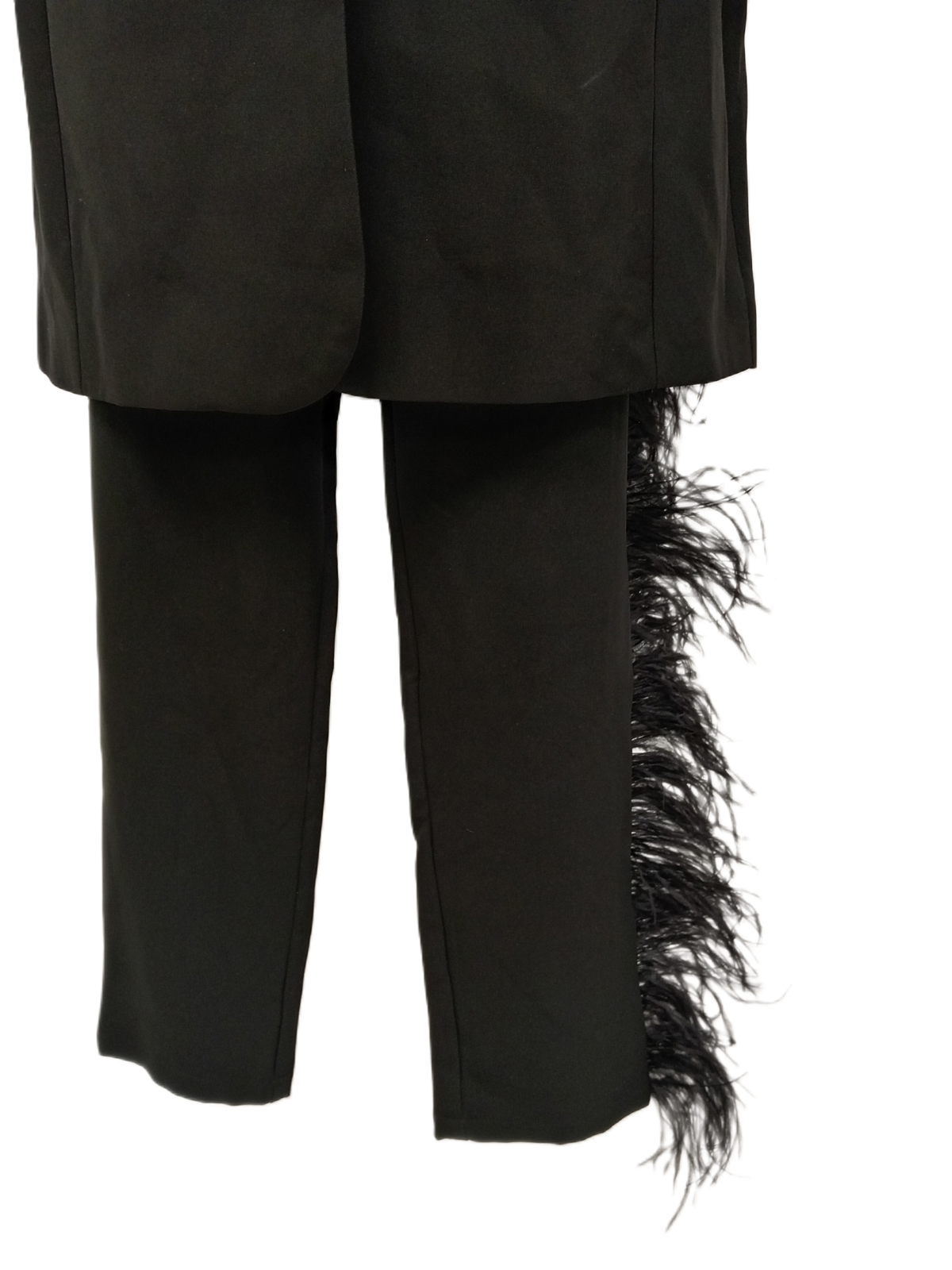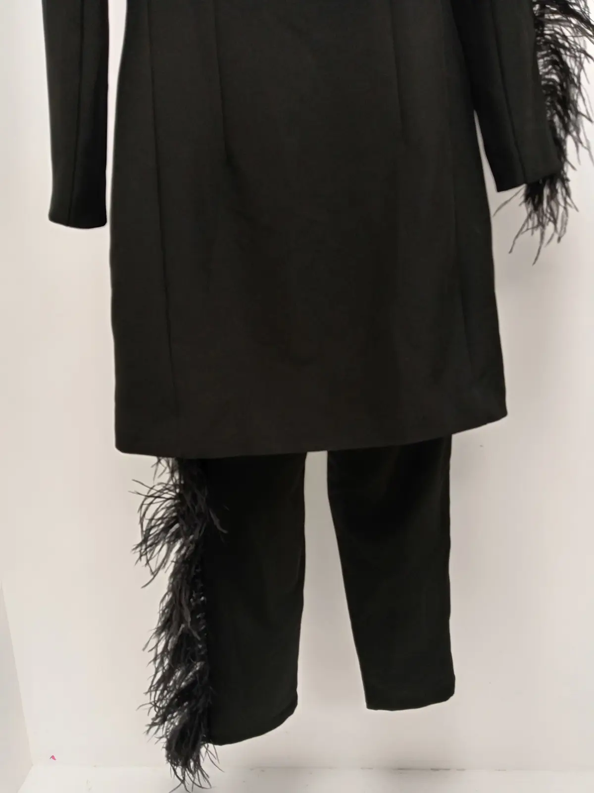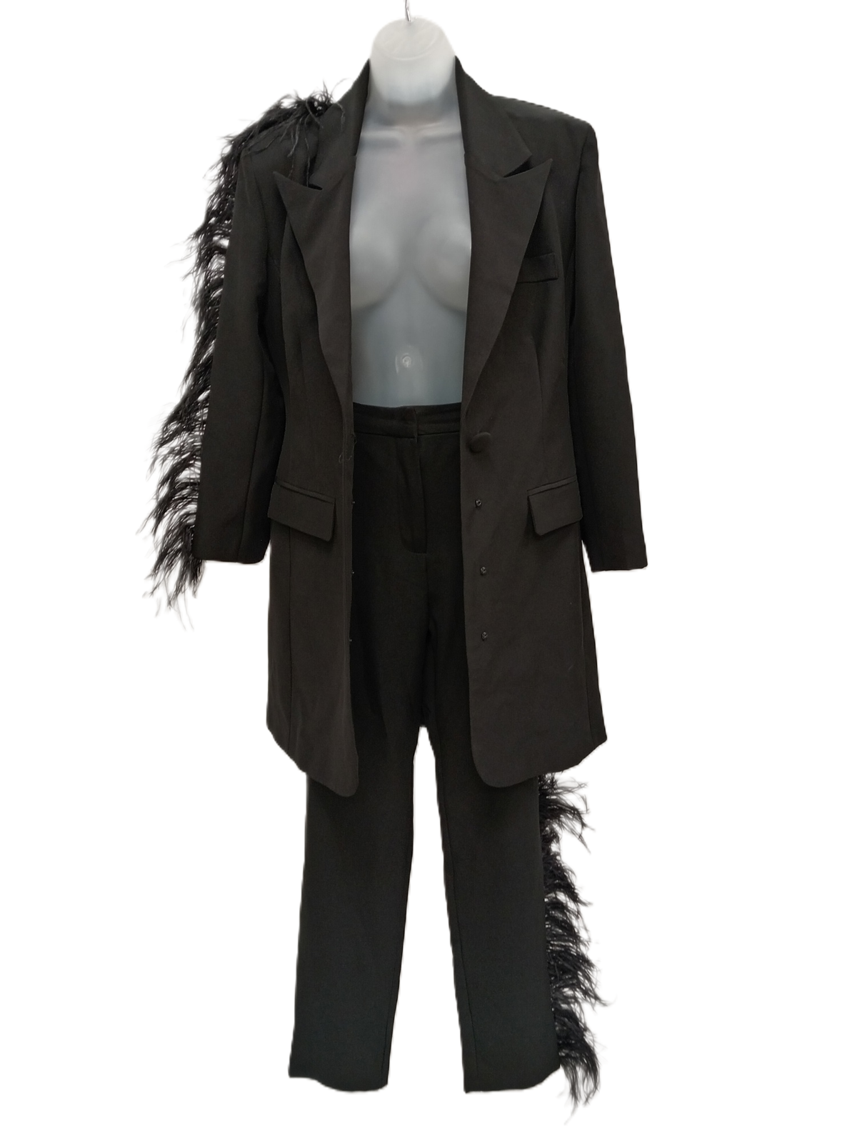CLUB L Ladies UK 10 Black 2 Piece Tuxedo Suit Feather Adorned Pre-Loved