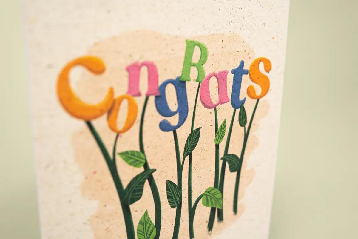 Celebrate life’s special moments with a card that’s as unique as it is eco-friendly. Made from 50% real grass clippings, this sustainable design brings a natural touch to your congratulations, standing out beautifully while showing kindness to the planet.