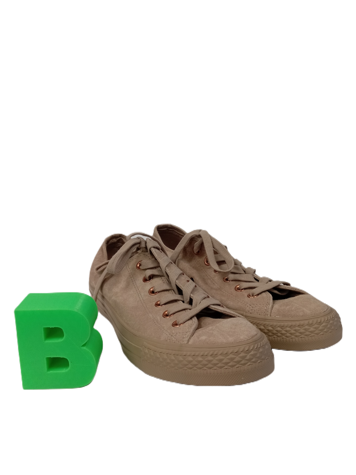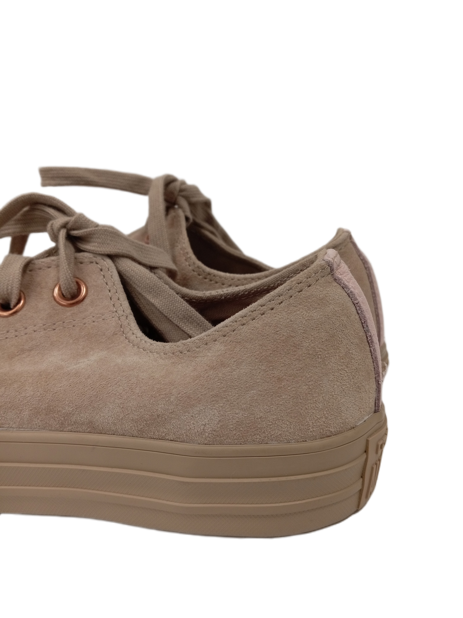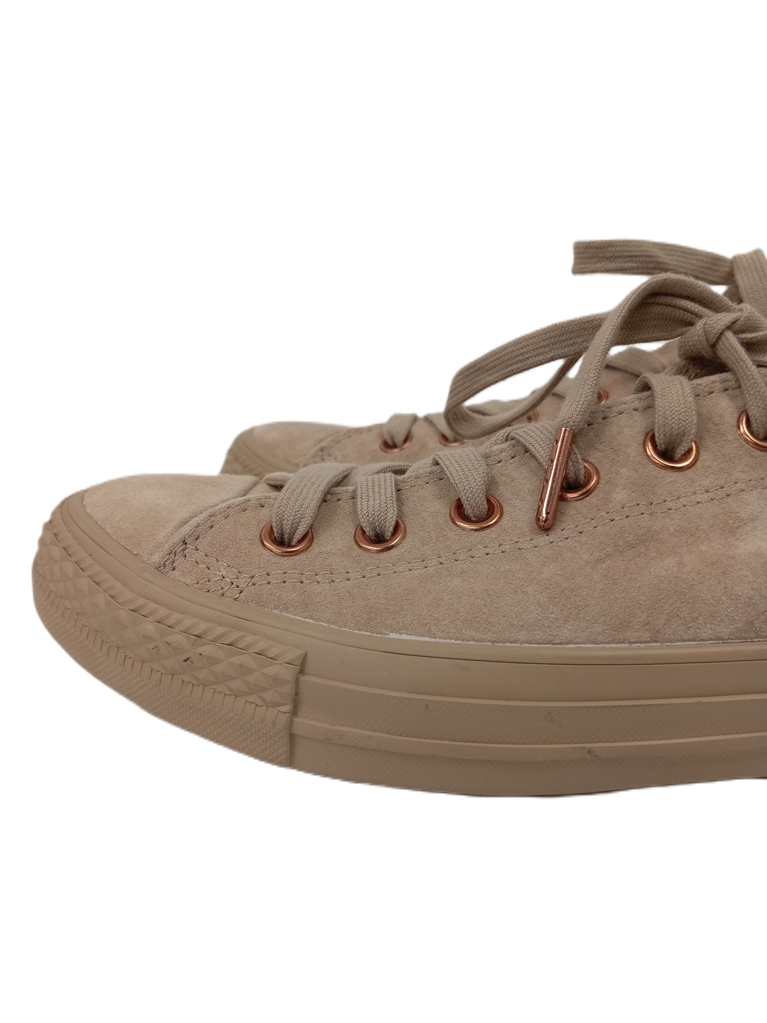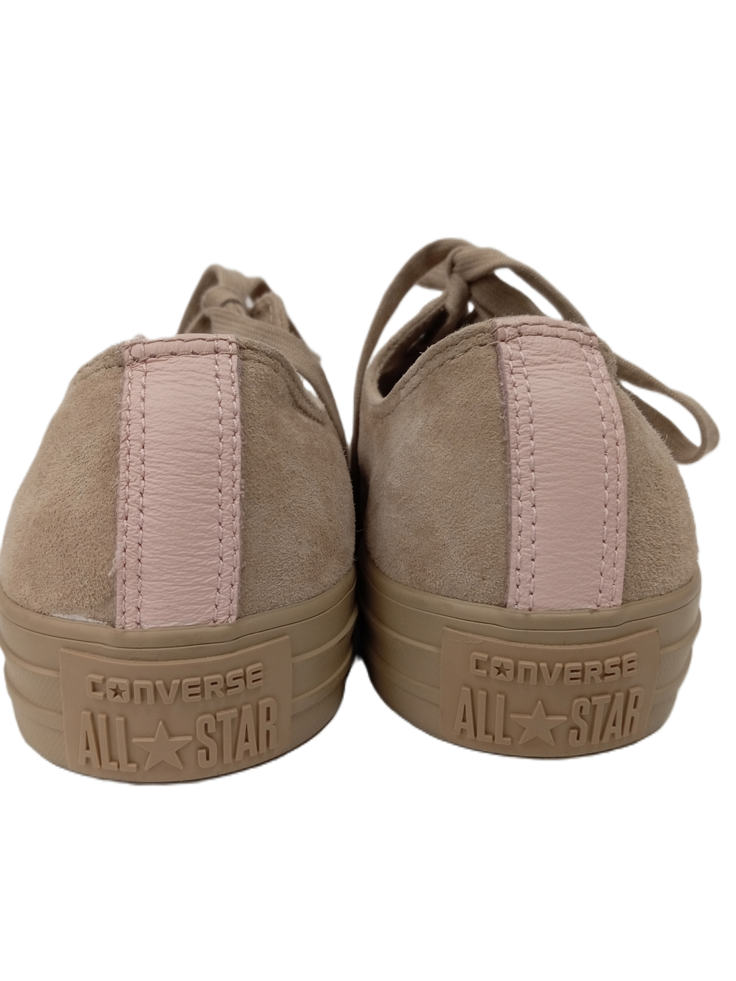Featuring a soft beige suede upper, these laced pumps boast the iconic low-top Converse All Star design, complete with a durable rubber toe cap and outsole for added comfort and style. The neutral hue makes them versatile enough to pair with any outfit, while the timeless design ensures they remain a wardrobe staple.