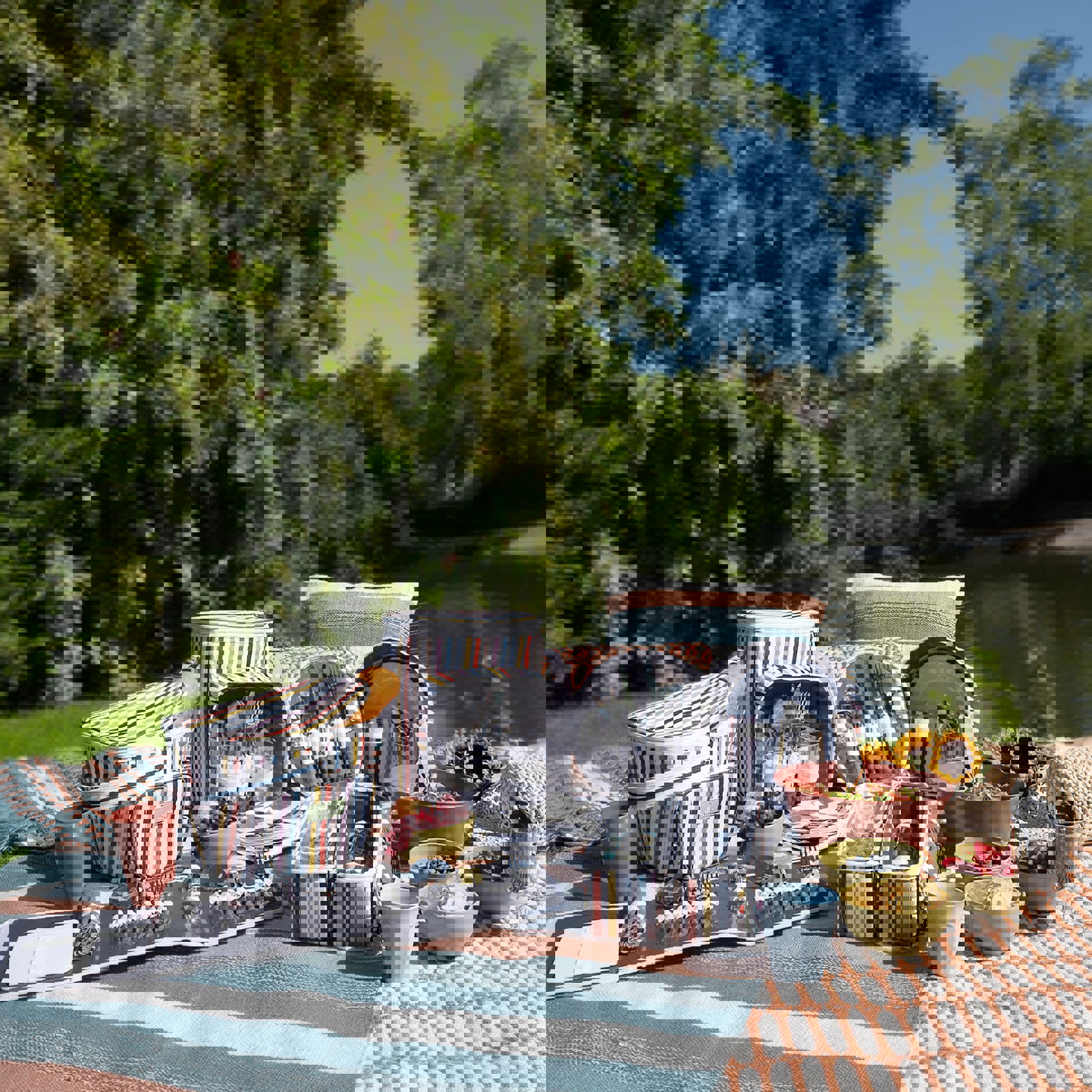 Make a vibrant statement this spring with the Country Living Four-Person Picnic Bag, the perfect companion for picnics and outdoor gatherings. Crafted from durable fabric with a bright, colourful striped design and a smart printed finish, it brings both style and practicality to days spent in the fresh air.