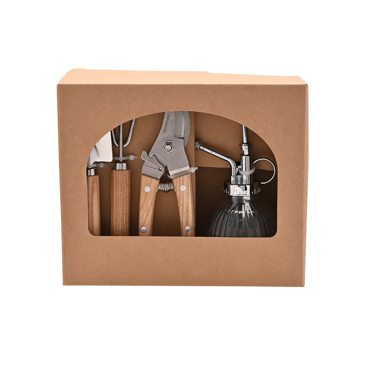 Designed for gardeners and allotment enthusiasts, this beautifully crafted set includes all the essential tools needed to nurture your green space: a hand cultivator, trowel, pruning shears, and watering can. The rustic style of these tools is perfect for those who appreciate traditional countryside aesthetics, making them both practical and charming.