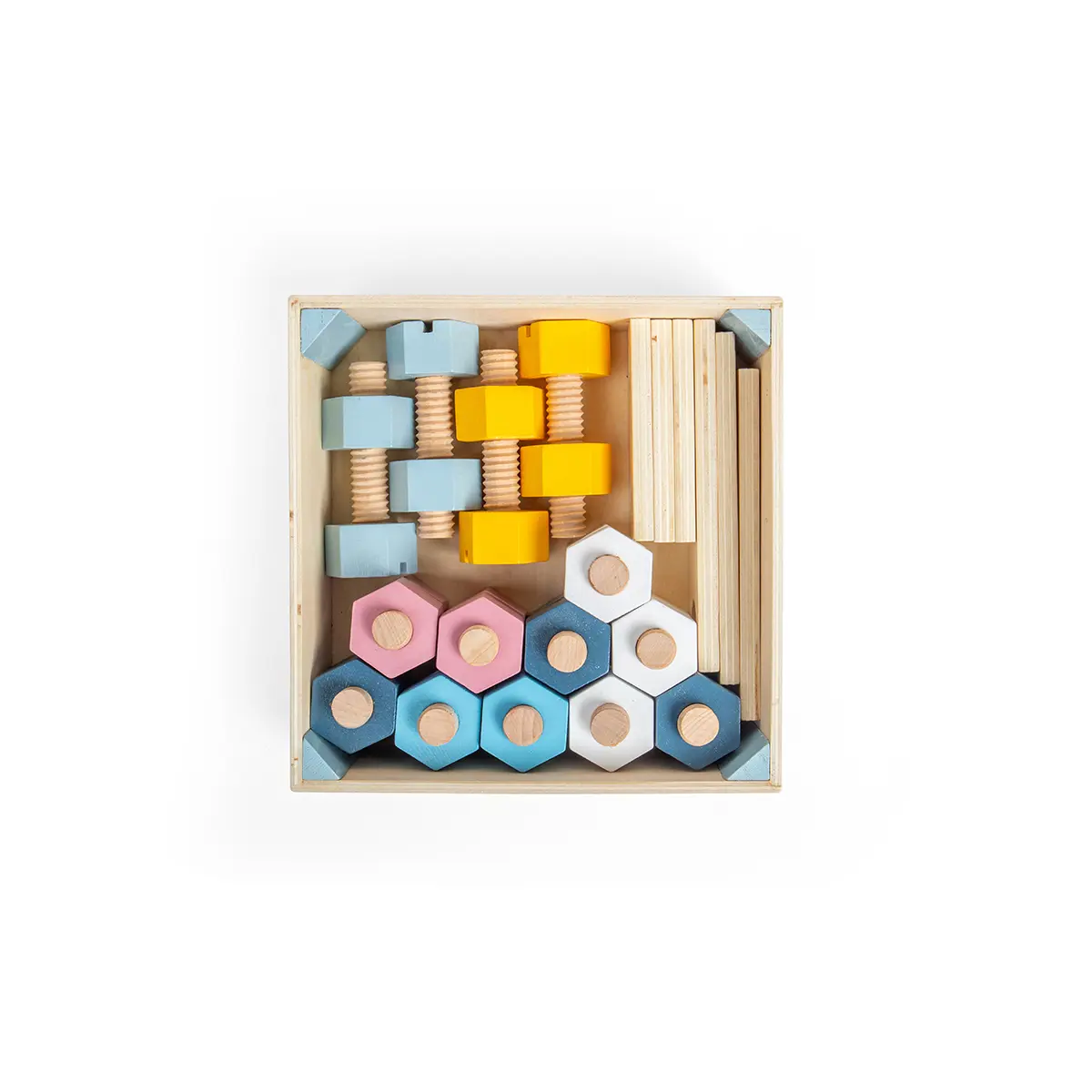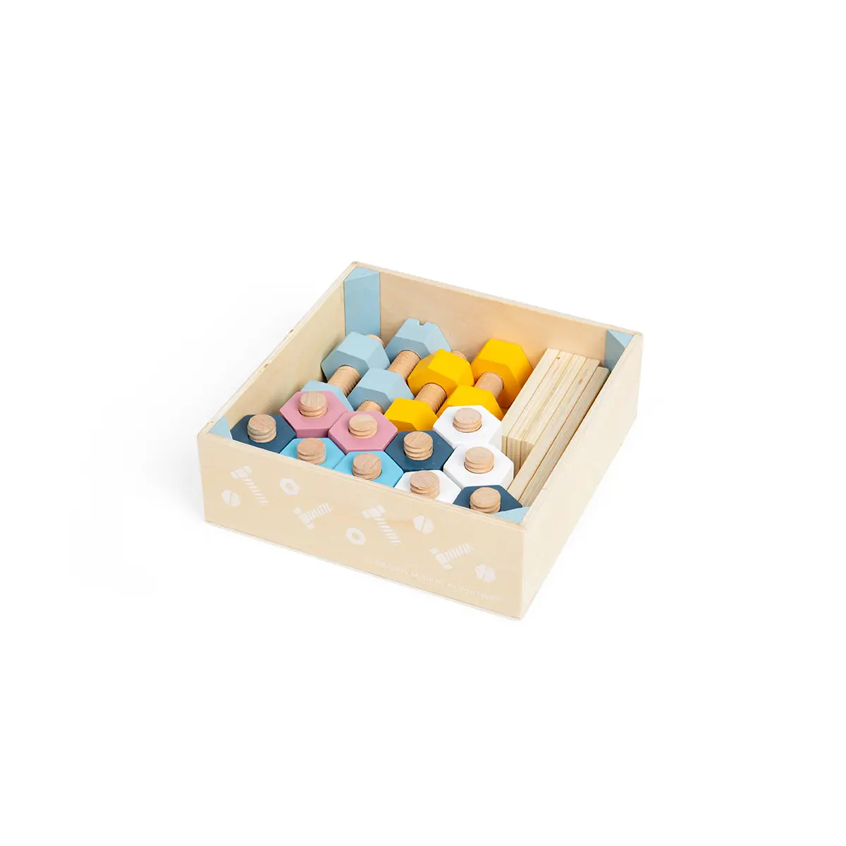 Crate of Wooden Nuts and Bolts - Set of 20