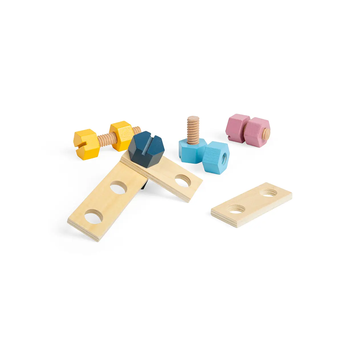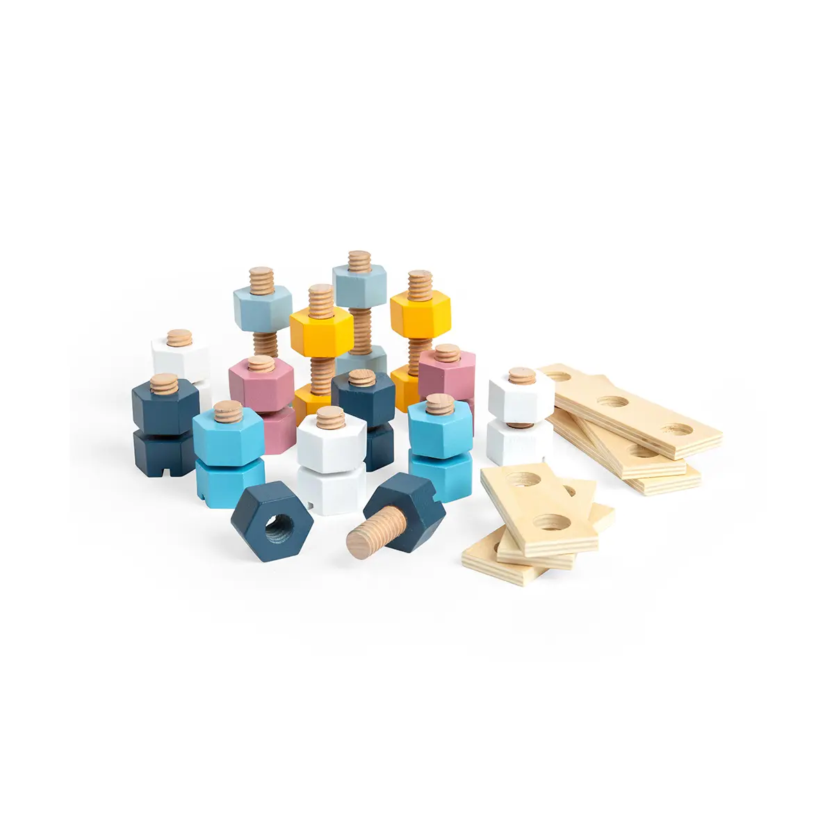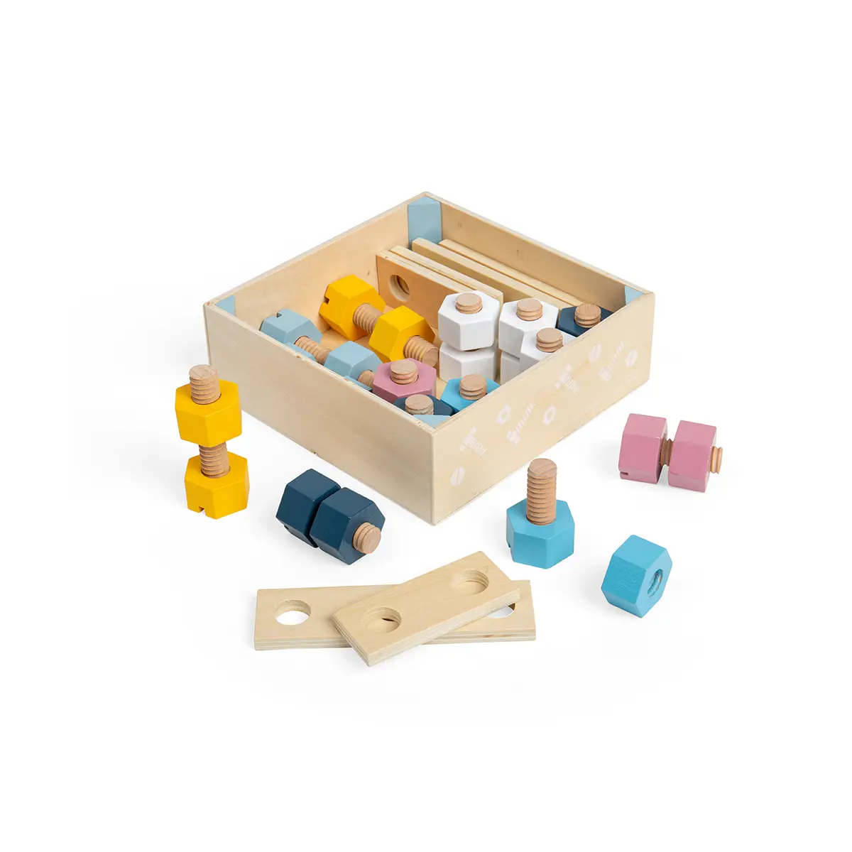 Let little crafters loose on their next DIY project with our chunky Wooden Nuts and Bolts. The large size is ideal for little hands to grip, hold and examine as they play. Supplied in a handy eco-friendly wooden crate, this construction toy is ideal for young engineers who are on the move! With a range of different pastel colours, the play possibilities are endless. Helps to develop dexterity and hand-eye coordination. Made from sustainably harvested responsibly sourced wood. Conforms to current European safety standards. Consists of 20 play pieces. responsibly sourced Crate of Nuts and Bolts - product features: 20 wooden nuts and bolts Made from ethically sourced responsibly sourced wood Wooden crate for easy storage 3 years +