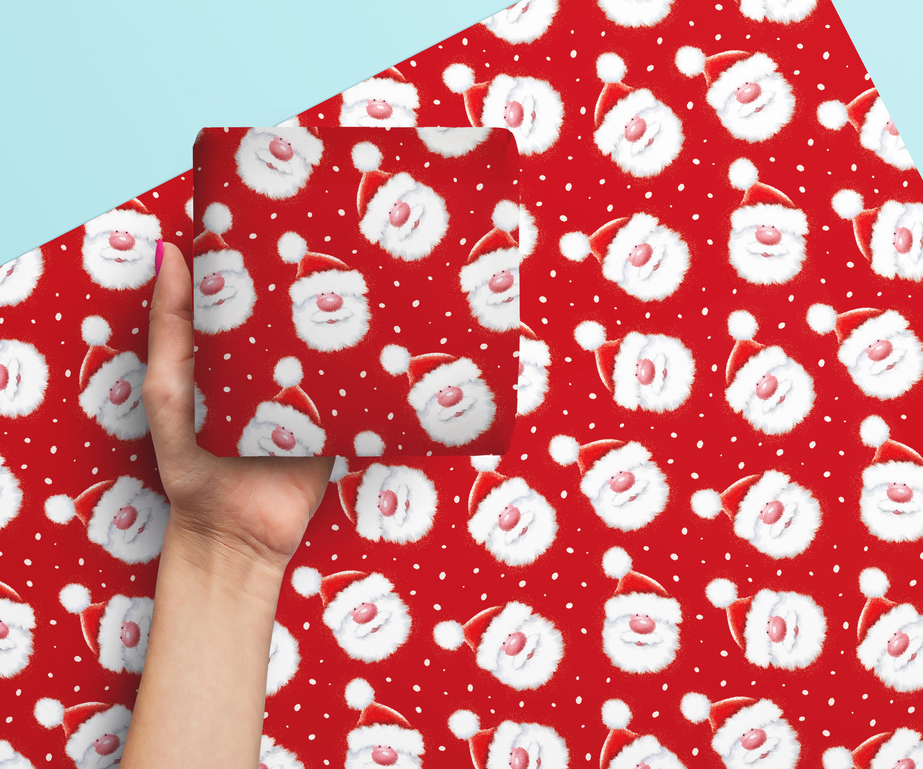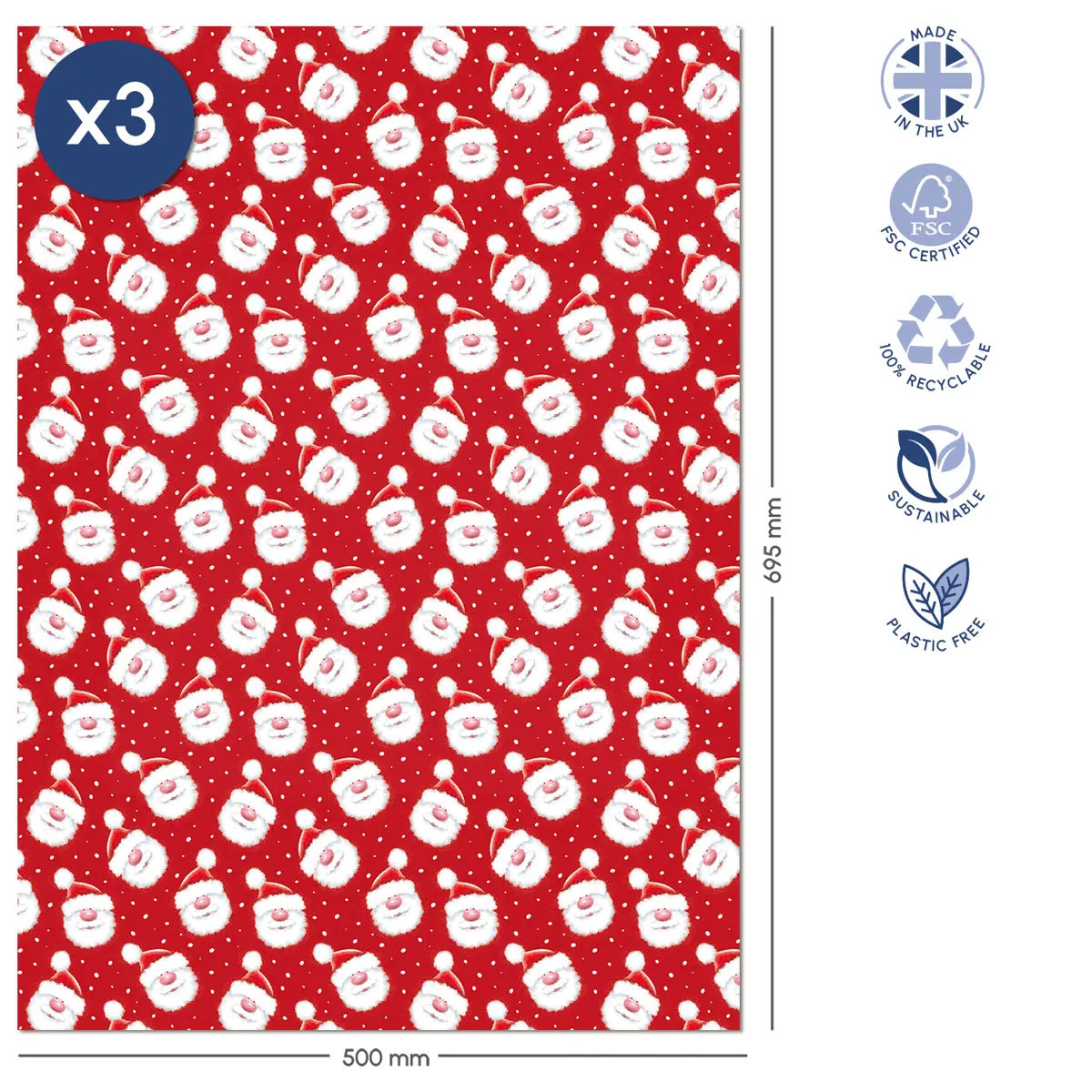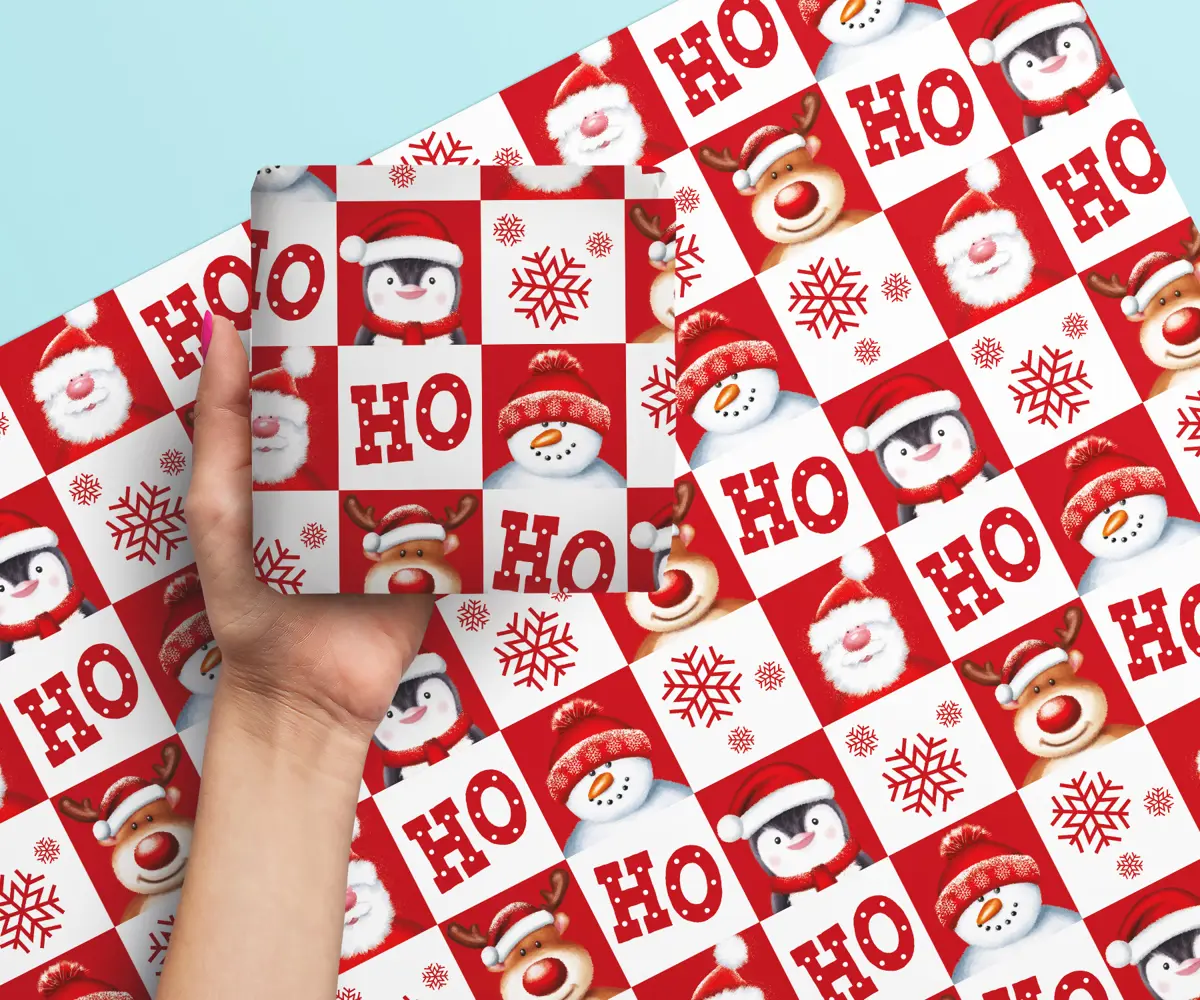Cute Santa and Friends Christmas Giftwrap Wrapping Paper - 6 Sheets & Assorted Tags