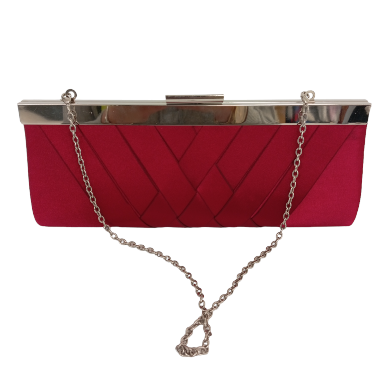 Introducing the DENTS Ladies Hand Held Red Silver Chain Prom Clutch Style Bag, an elegant and eye-catching accessory perfect for adding a pop of color to your evening ensemble. This sophisticated clutch is designed to complement your style at any special event, from proms to glamorous parties.