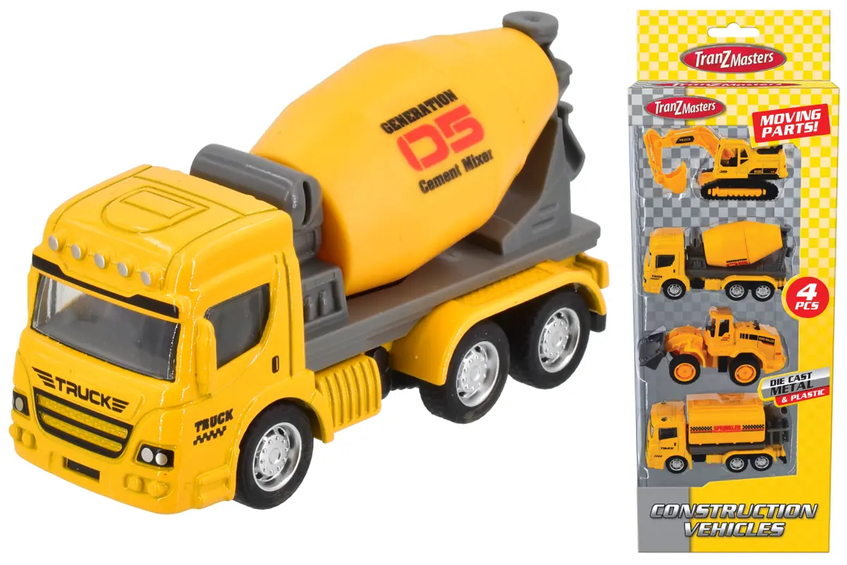 Get you hands on our 4 construction vehicles for endless fun for hours on end! Hours of imaginative play for the budding builder with moveable lorries, including cement mixer, road roller, pick up truck and sprinkler to let imaginations go wild! Made from die cast metal and sturdy plastic for endless play indoors and out.