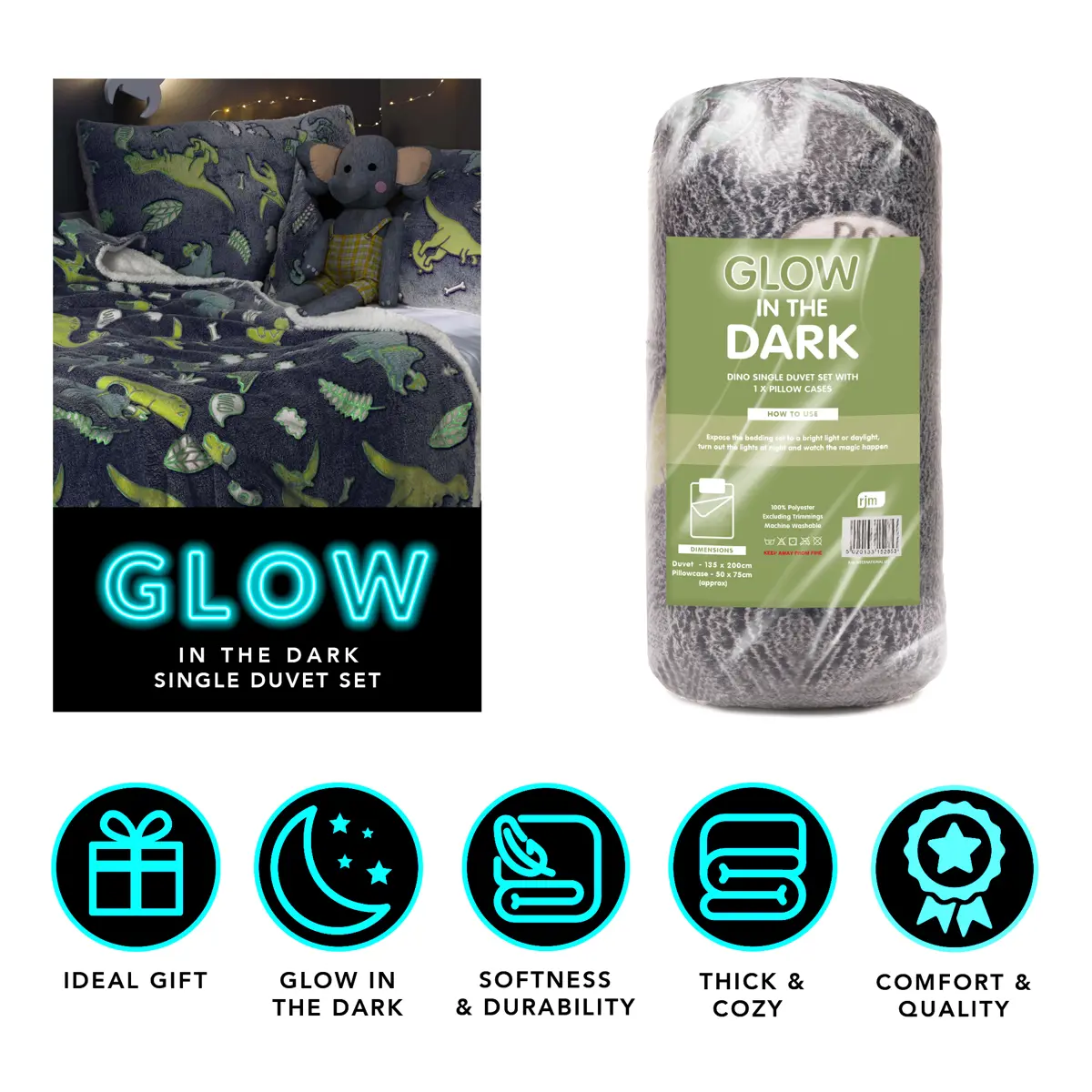 Dinosaur Design Glow in the Dark Children's Single Duvet Set