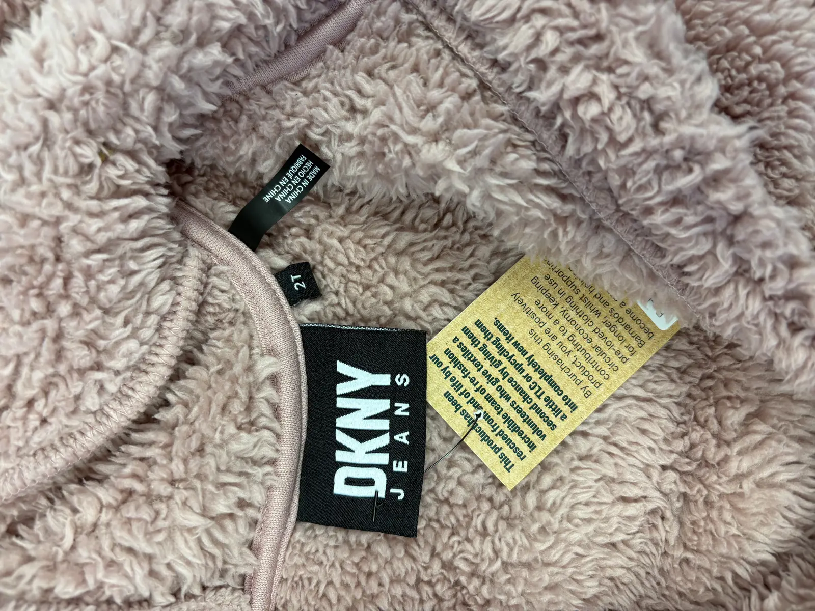 DKNY Girls Pink Teddy Fleece Full Zip Hoodie Size 2T Pre-Loved Re-Fashioned