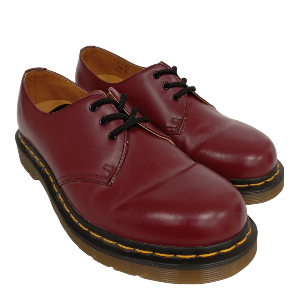 The DR MARTENS Lace Up Shoes feature a striking cherry red colour that stands out, making them a versatile addition to both casual and semi-formal wardrobes. The classic lace-up design ensures a secure fit, while the signature yellow stitching adds a touch of brand recognition and style. The robust sole is engineered for excellent traction and durability, maintaining the brand's reputation for creating long-lasting footwear. The timeless design includes a rounded toe and the signature DR MARTENS heel loop, combining both aesthetics and functionality.