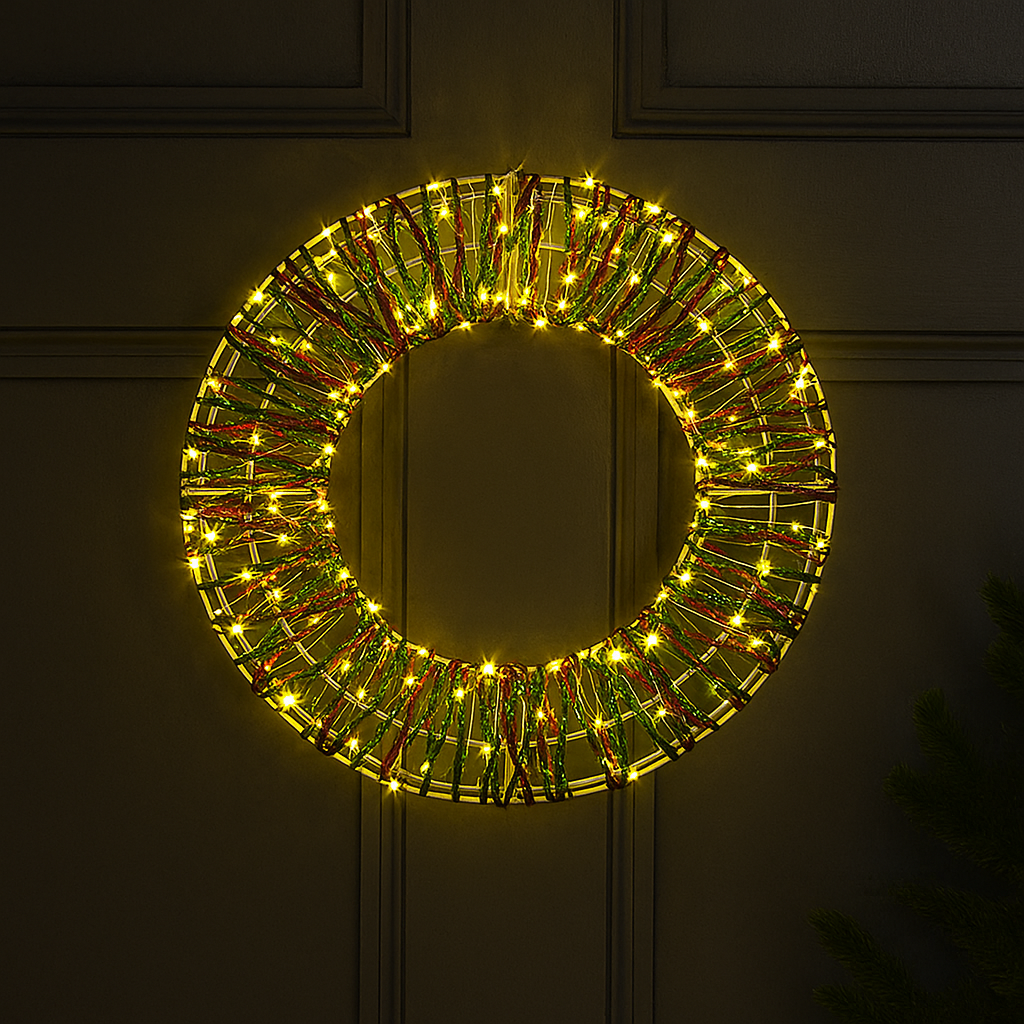 Welcome the festive season with this beautiful 38 cm Dream Christmas wreath, designed to bring a traditional touch to your door or wall. Decorated in classic red and green with warm white LEDs woven throughout, it creates a cosy, inviting glow that's perfect for celebrating the holidays in style.