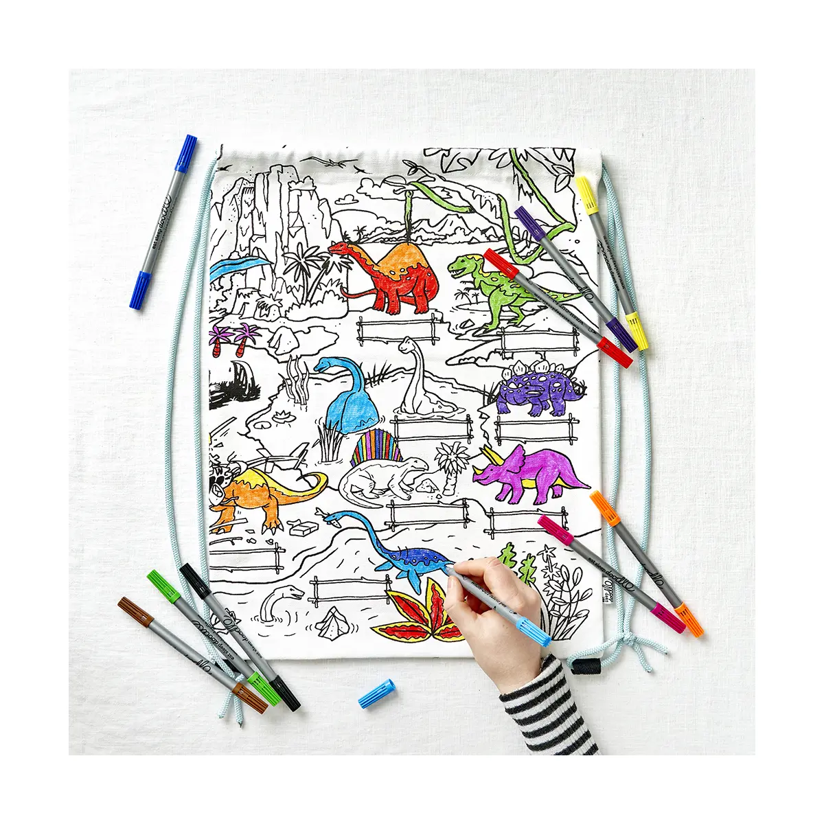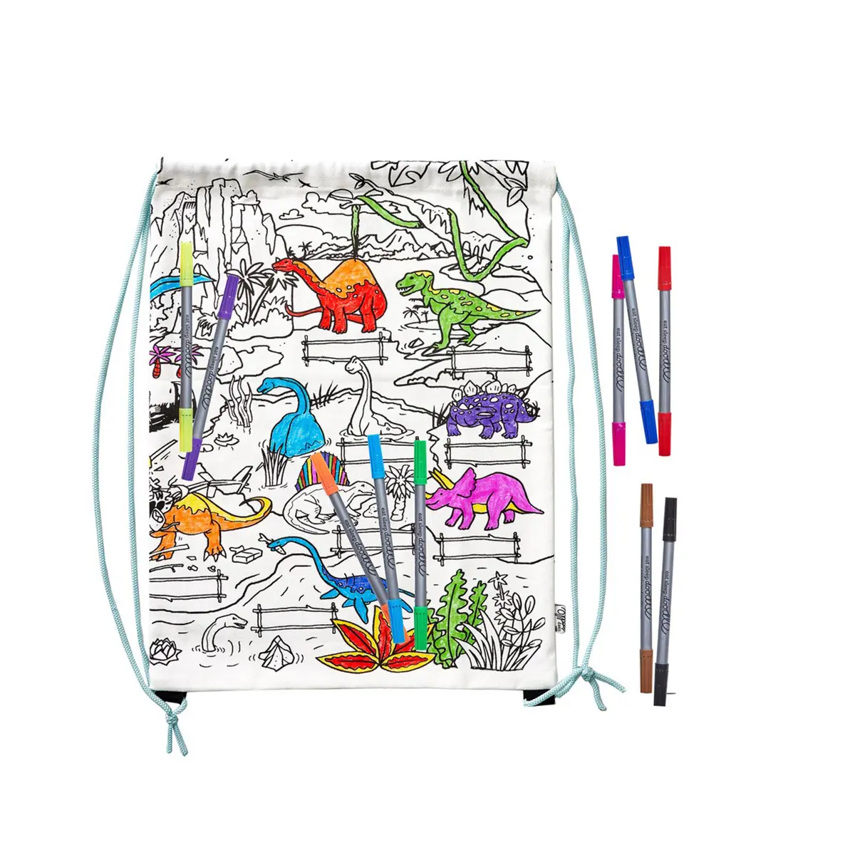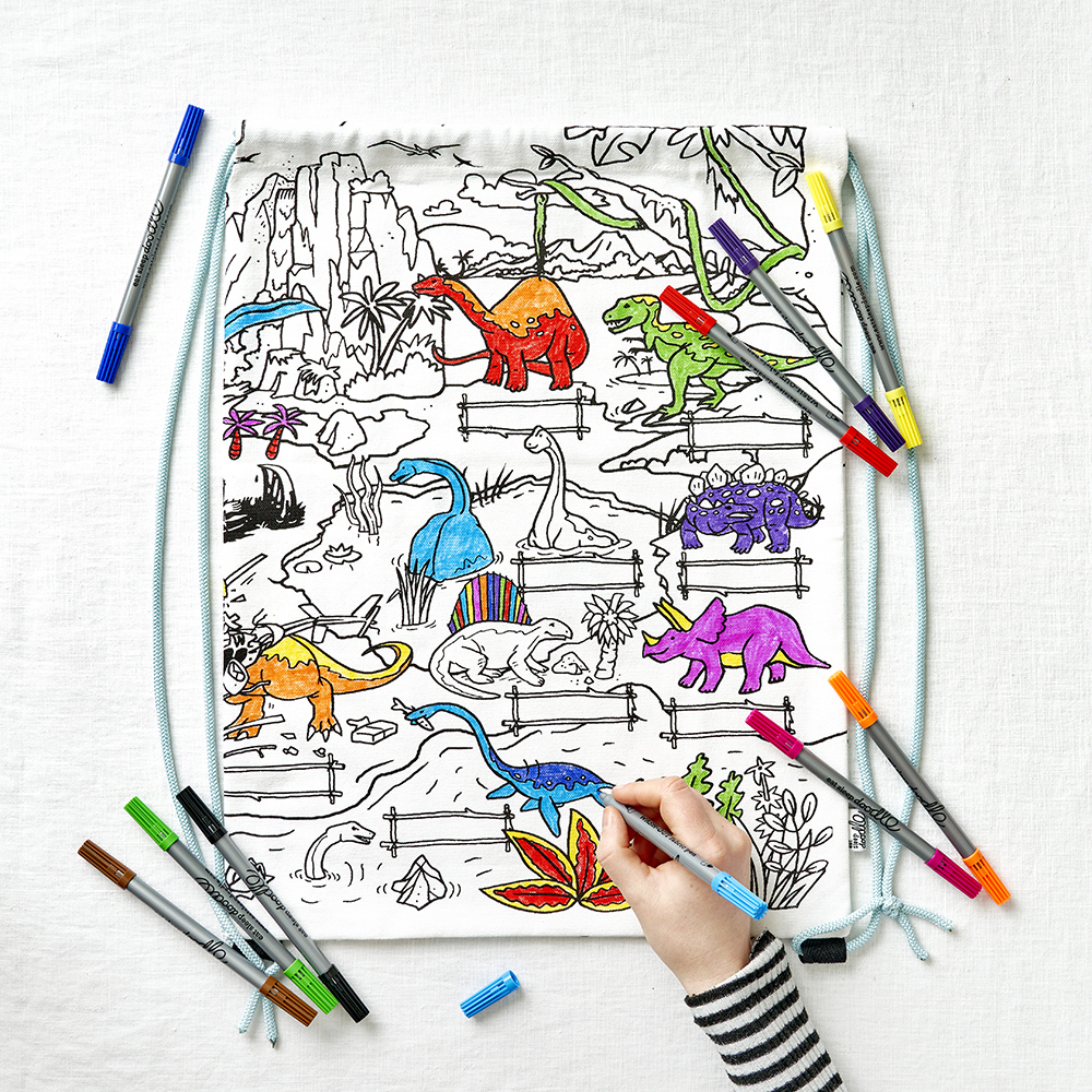 Eat Sleep Doodle Children's Colour In And Wash Out Dinosaur Backpack And Fabric Pens