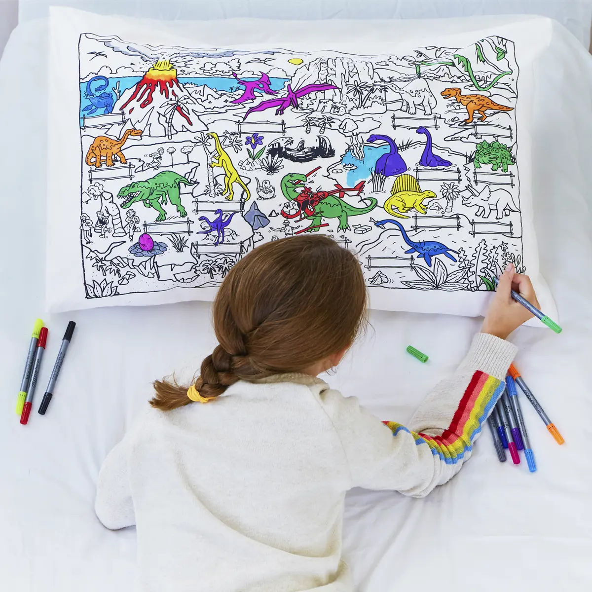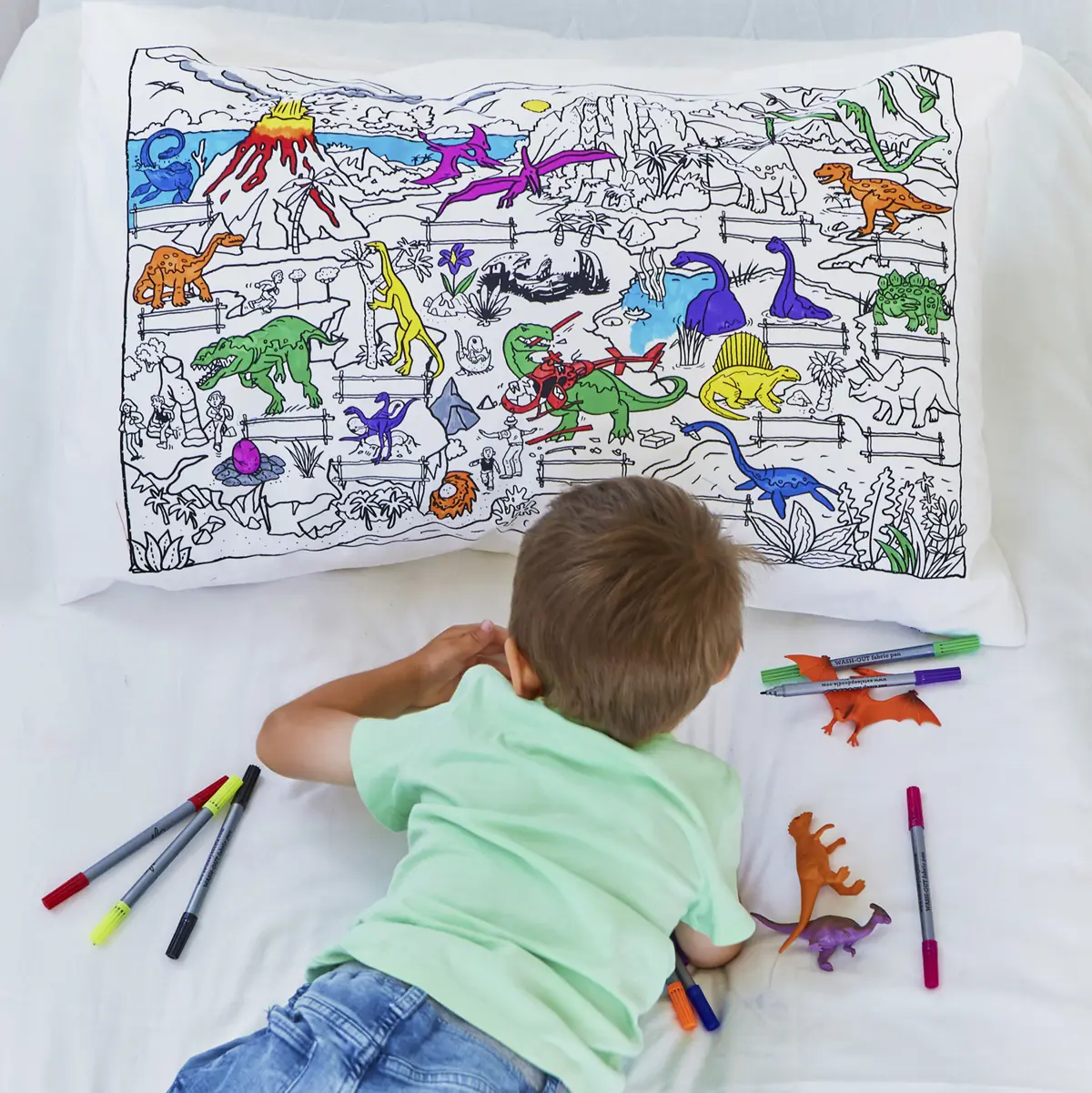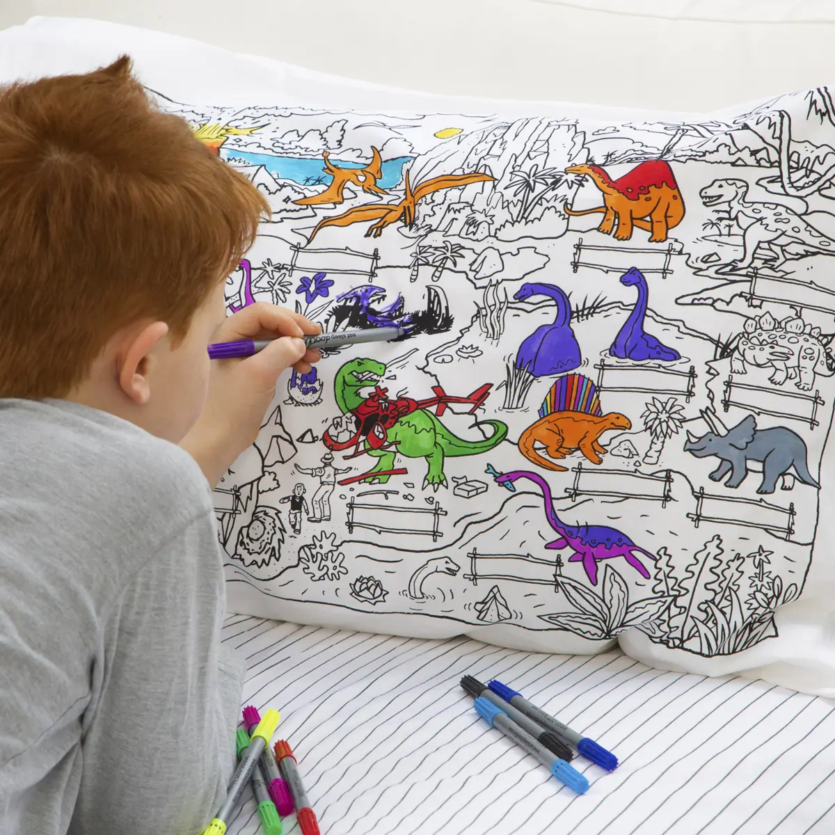 Eat Sleep Doodle Children's Colour In And Wash Out Dinosaur Pillowcase And Fabric Pens