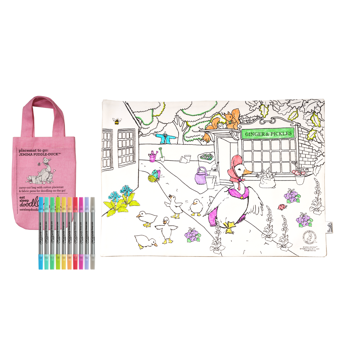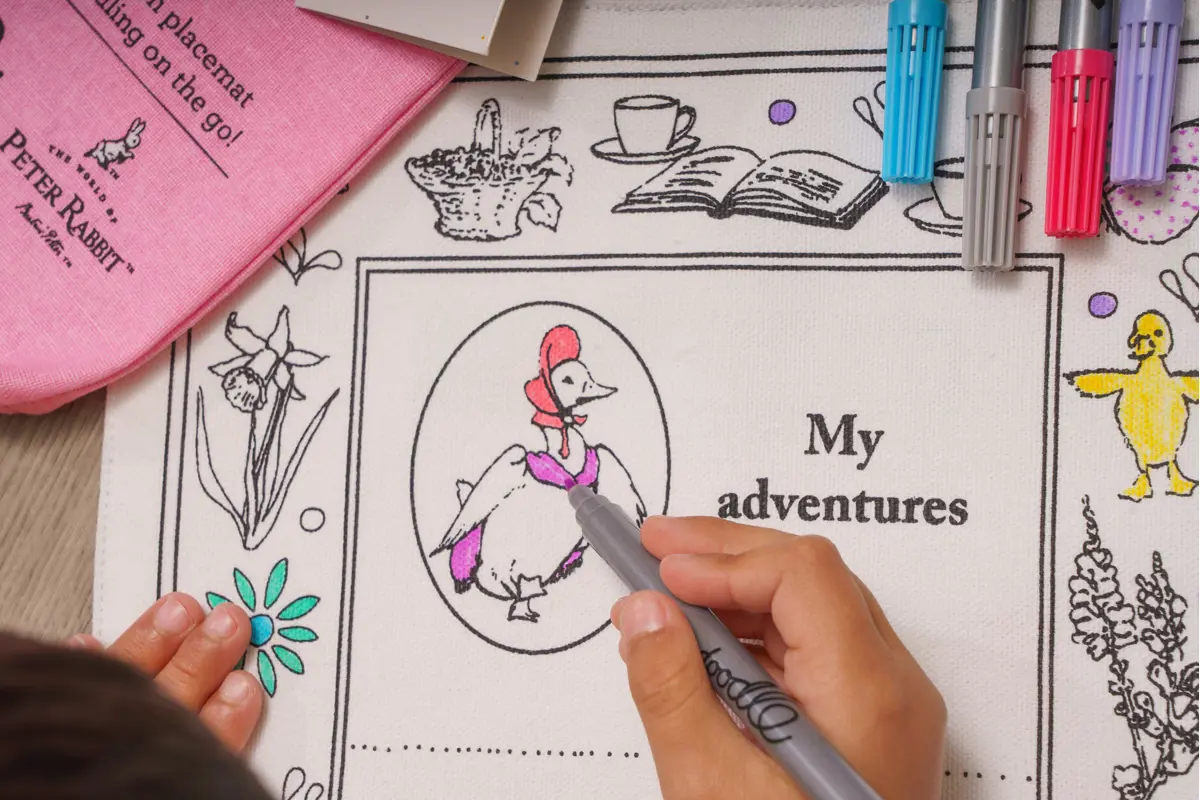 Eat Sleep Doodle Children's Colour In And Wash Out Jemima Puddle-Duck Placemat To Go And Fabric Pens