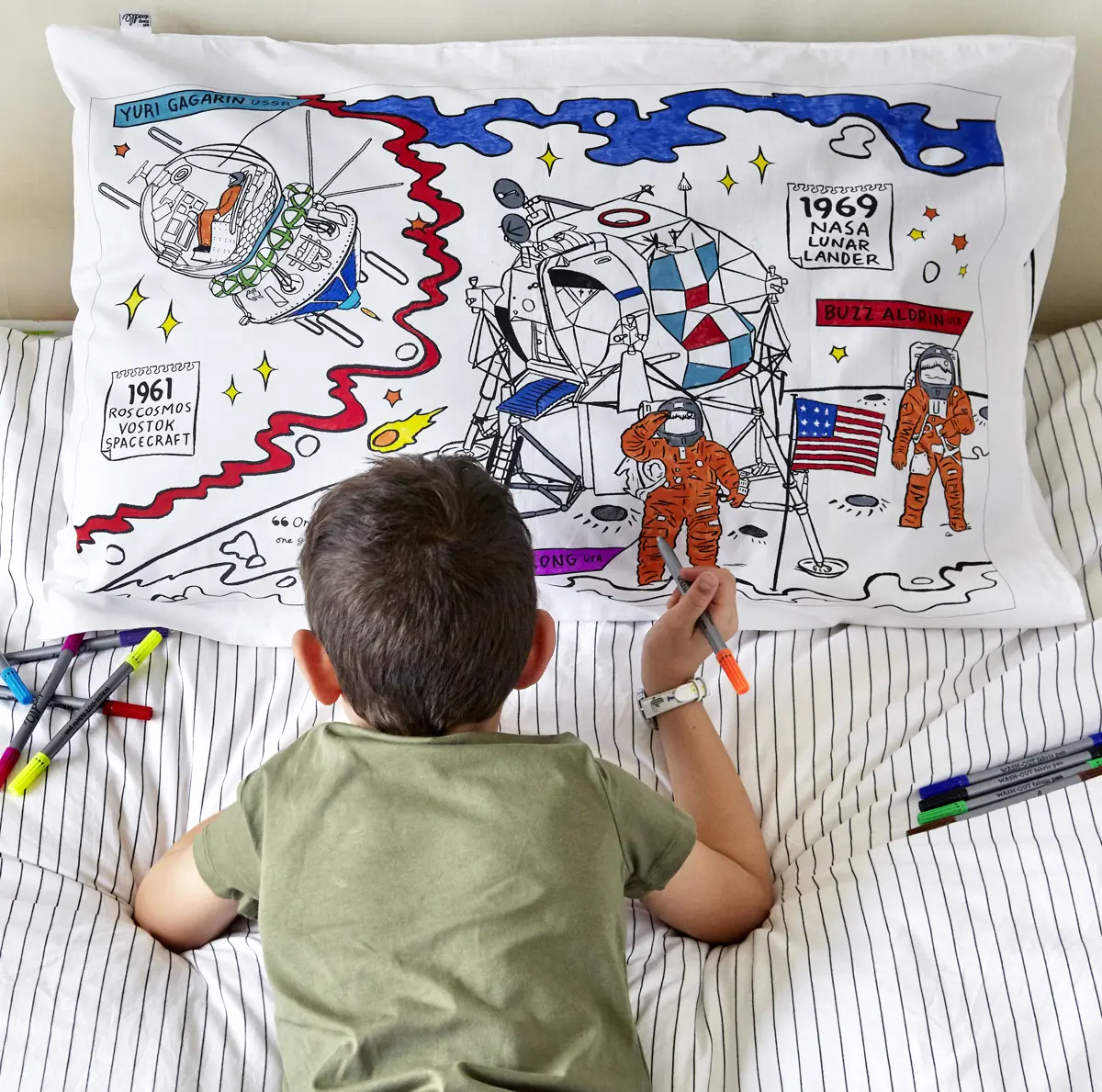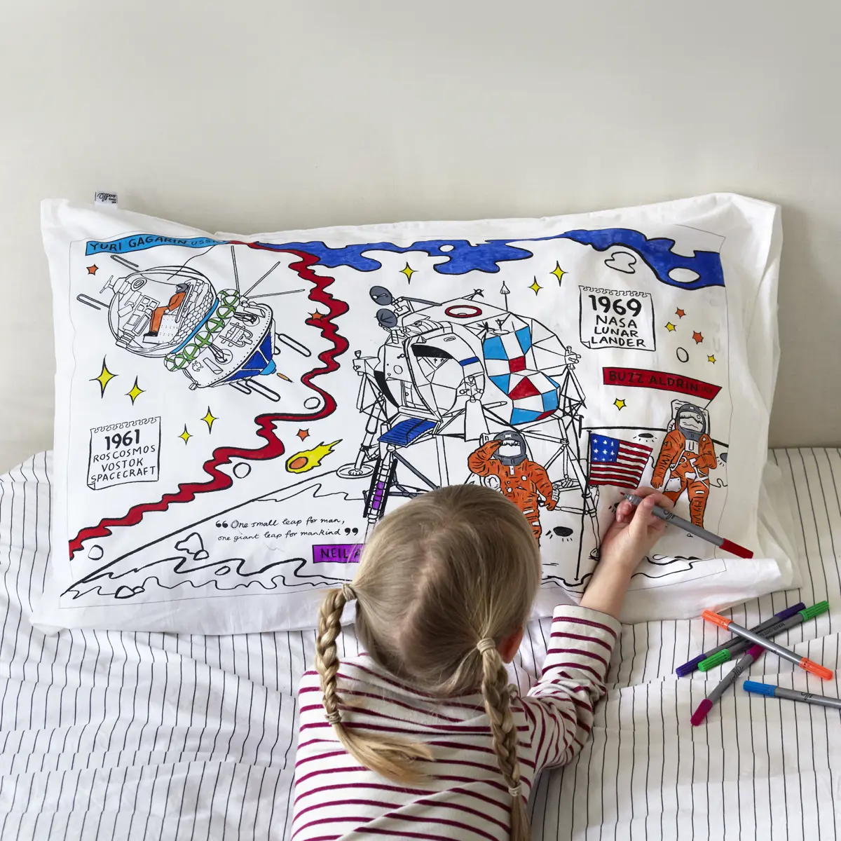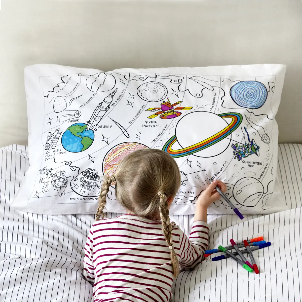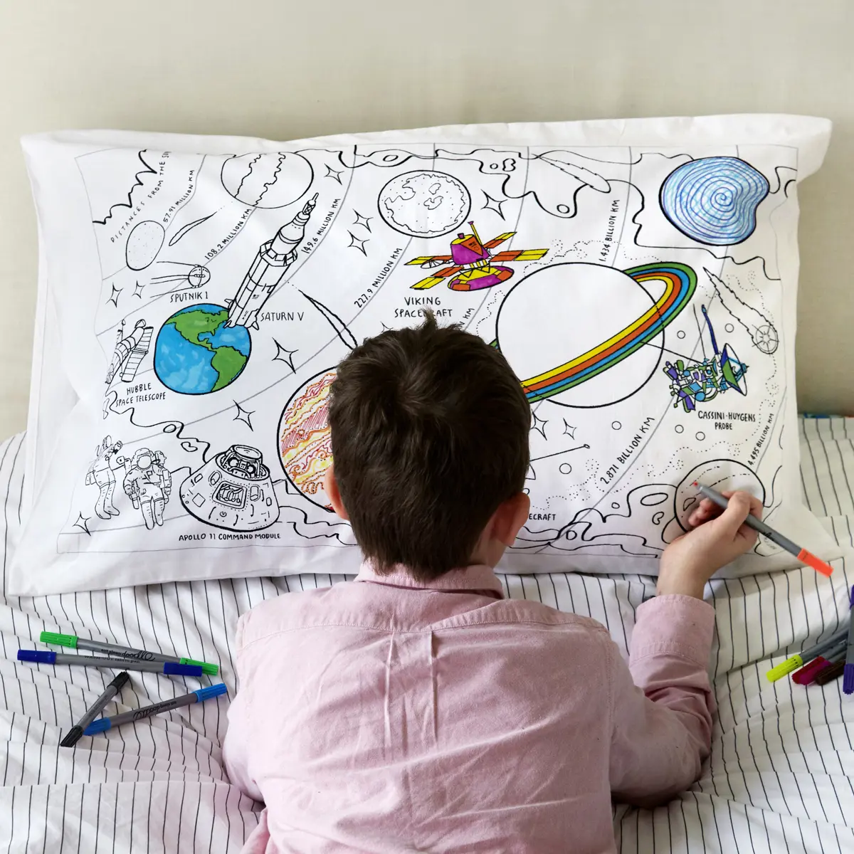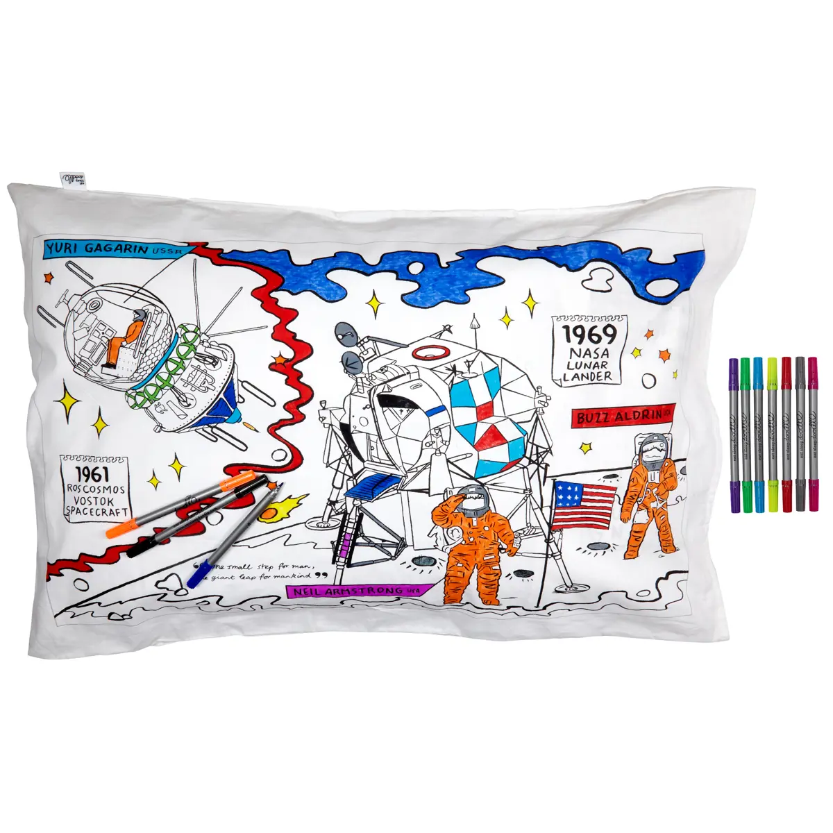 Eat Sleep Doodle Children's Colour In And Wash Out Space Explorer Pillowcase And Fabric Pens