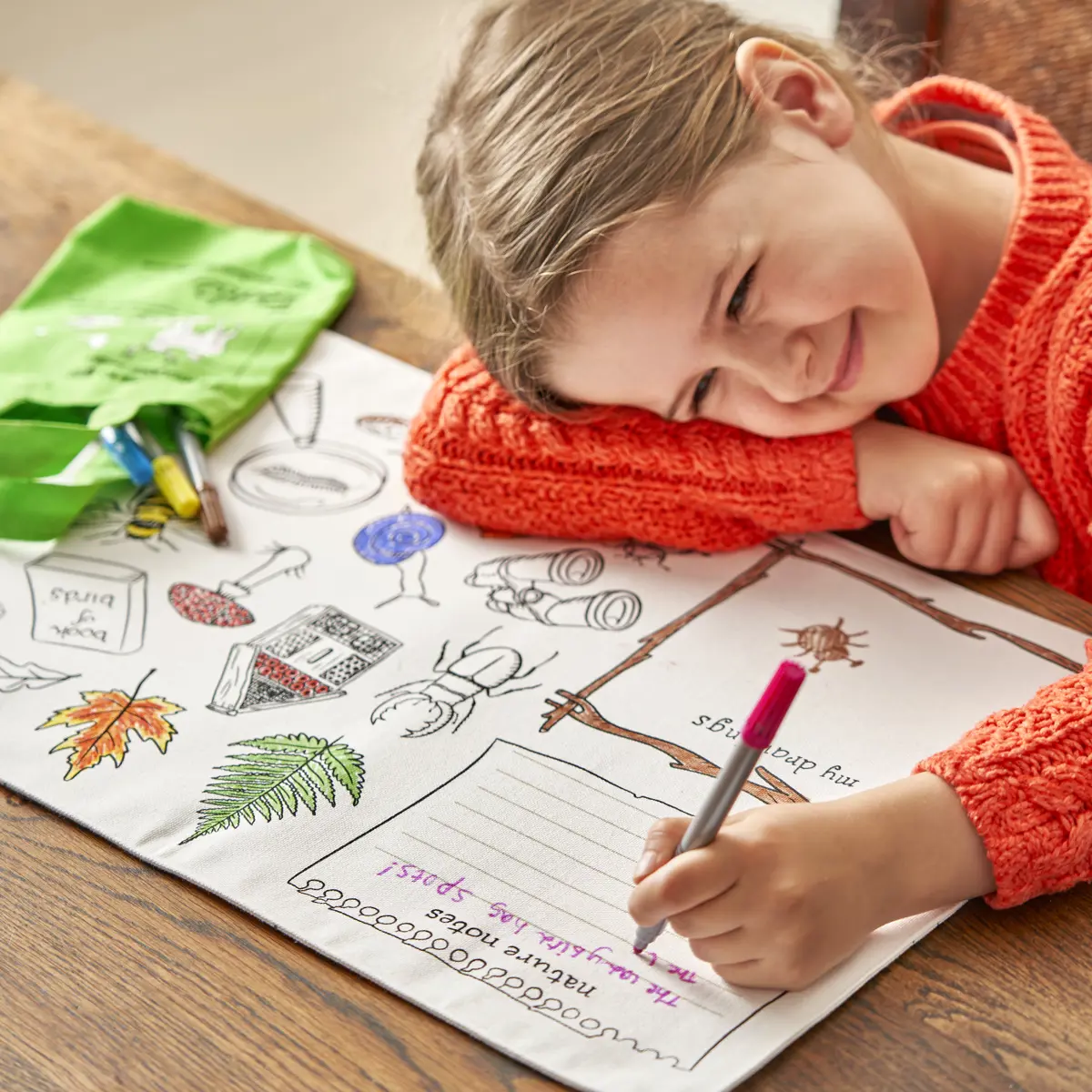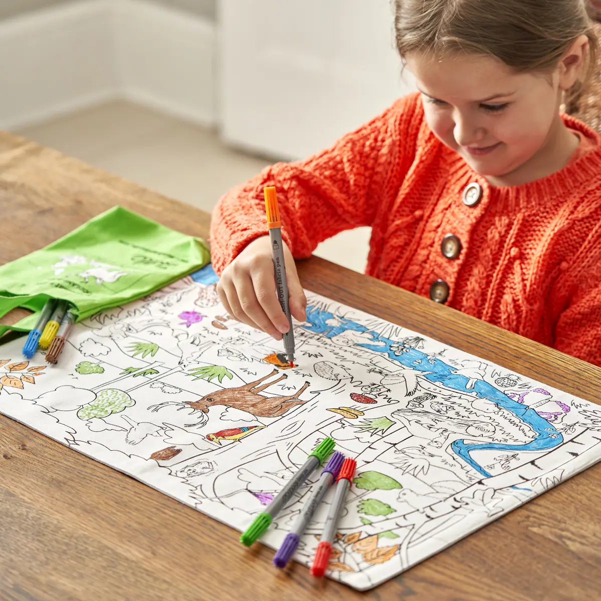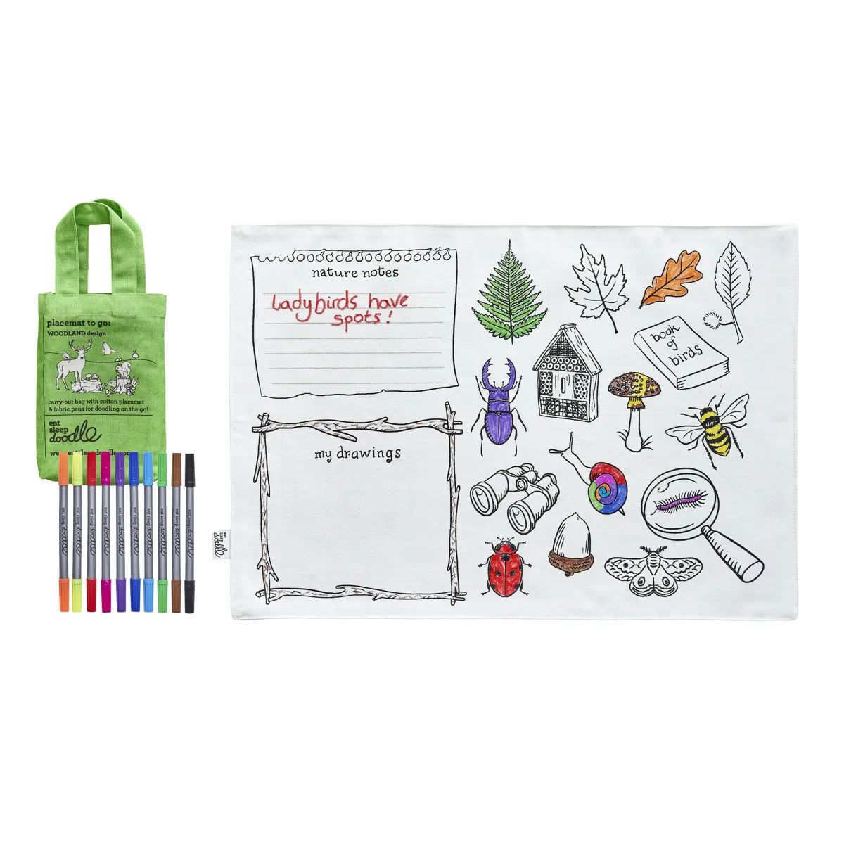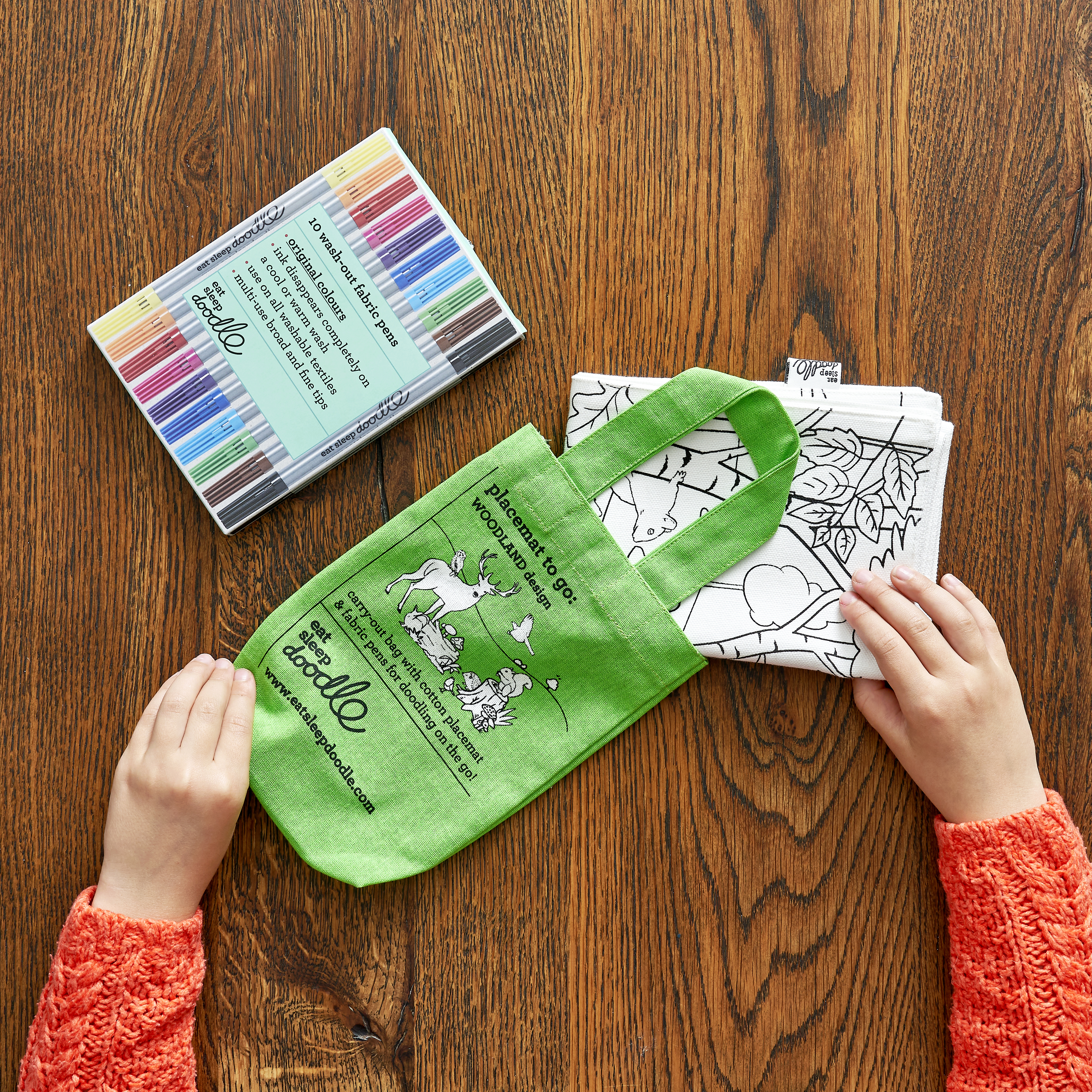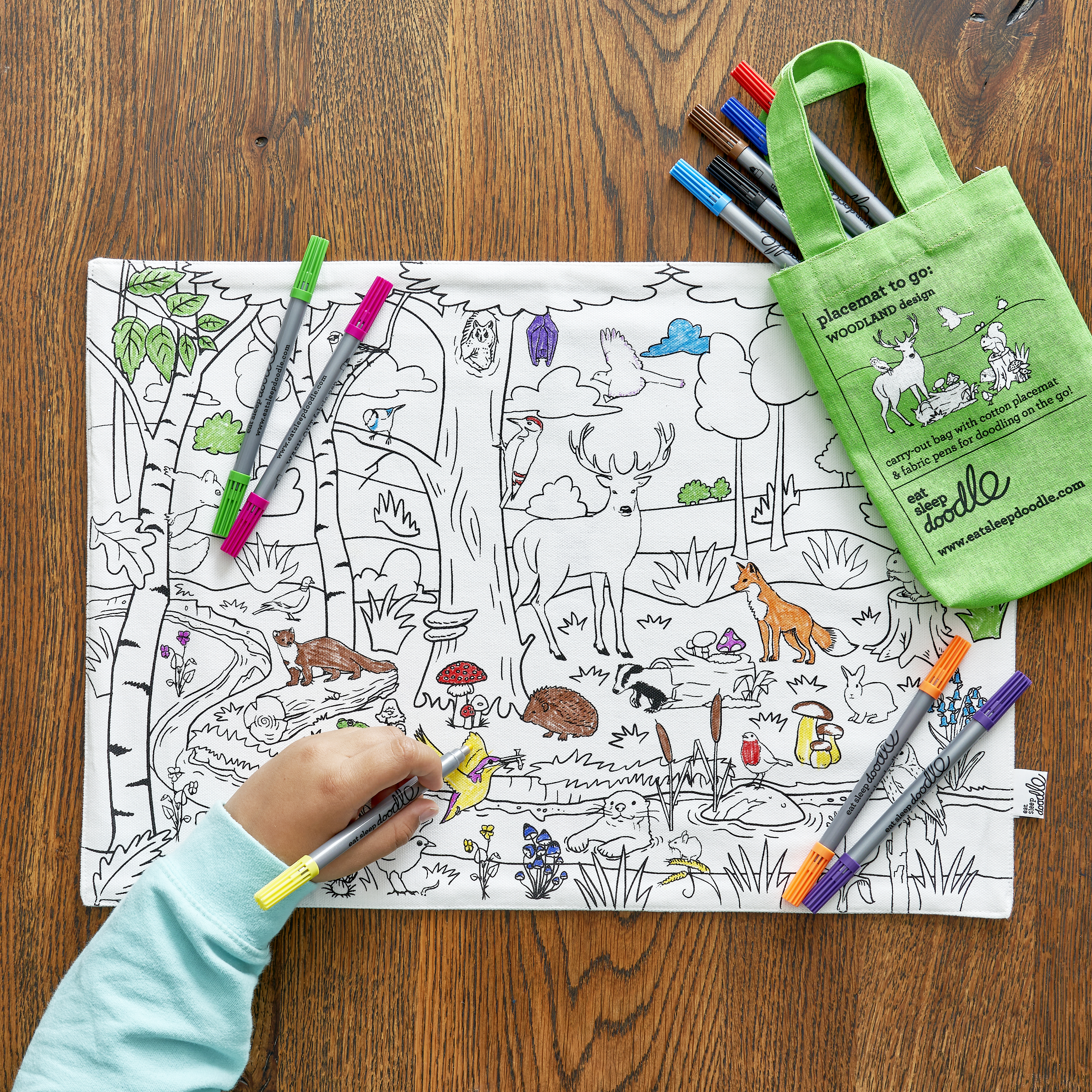 Eat Sleep Doodle Children's Colour In And Wash Out Woodland Placemat To Go And Fabric Pens
