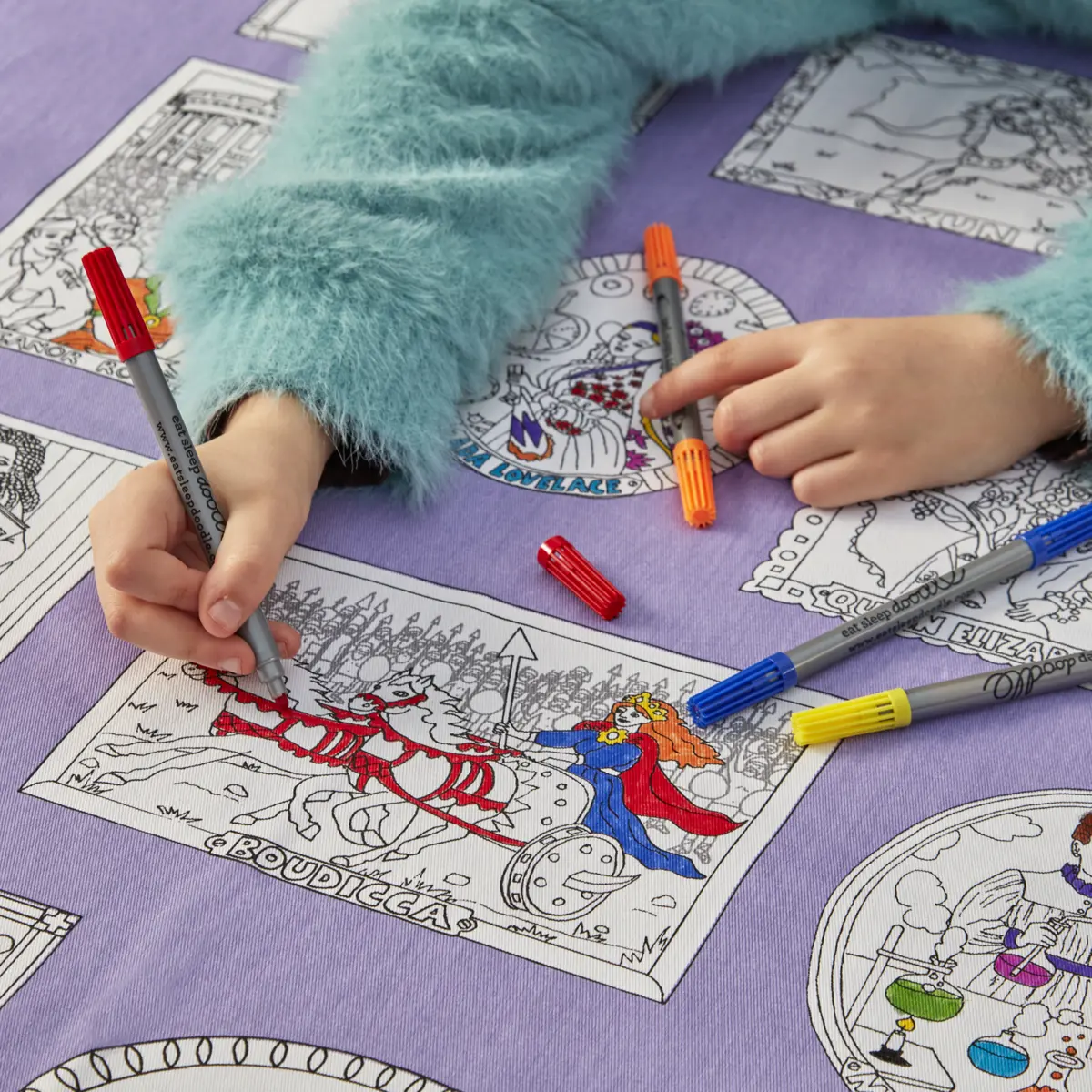 Eat Sleep Doodle Colour In And Wash Out Heroines of History Tablecloth And Fabric Pens