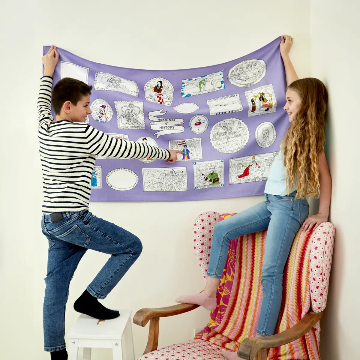 Help your kids celebrate influential women of history with the Heroine Tablecloth from Eat Sleep Doodle. Adorned with both familiar and lesser-known faces from Cleopatra to Boudicca, this innovative homeware piece enables hours of colouring and learning. Three frames are left empty for your child to draw their own hero, too. Simply use the wash-out fabric pens to get creative, then pop the cloth in the washing machine to remove the ink. Featuring two corner loops, your little historian can even showcase their art on the wall. A fantastic tool to empower kids of all ages. Includes 10 wash out pens. 130 x 85 cm