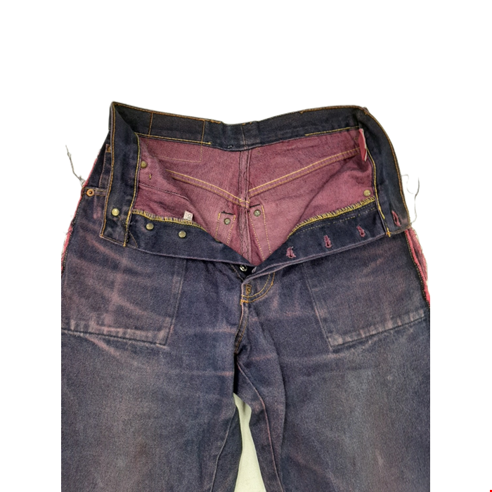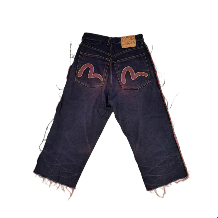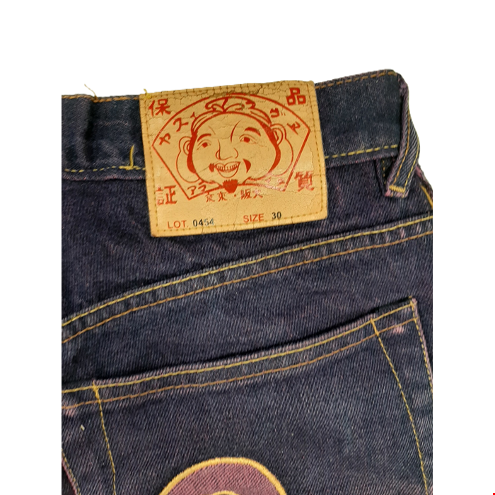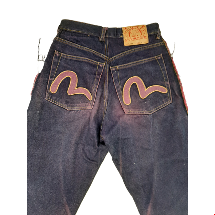 Make a bold style statement with these EVISU Distressed Denim Jeans in a vibrant purple wash, blending edgy streetwear vibes with premium denim craftsmanship. With their worn-in distressing and standout hue, they're perfect for fashion lovers who aren’t afraid to turn heads.