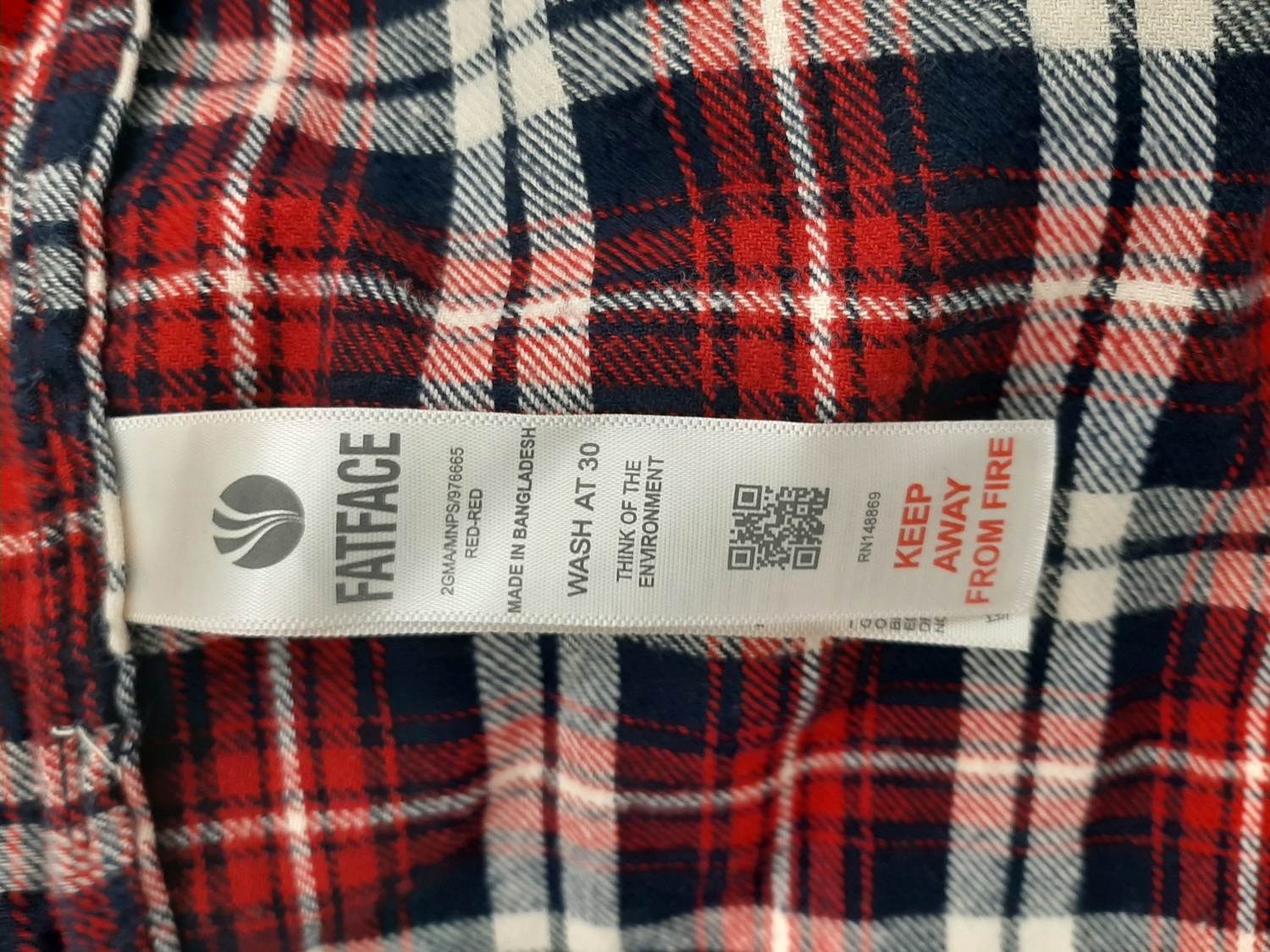 FatFace Men's Pyjama Shirt Red Check Brushed Cotton Size UK L BNWT Re-Fashioned