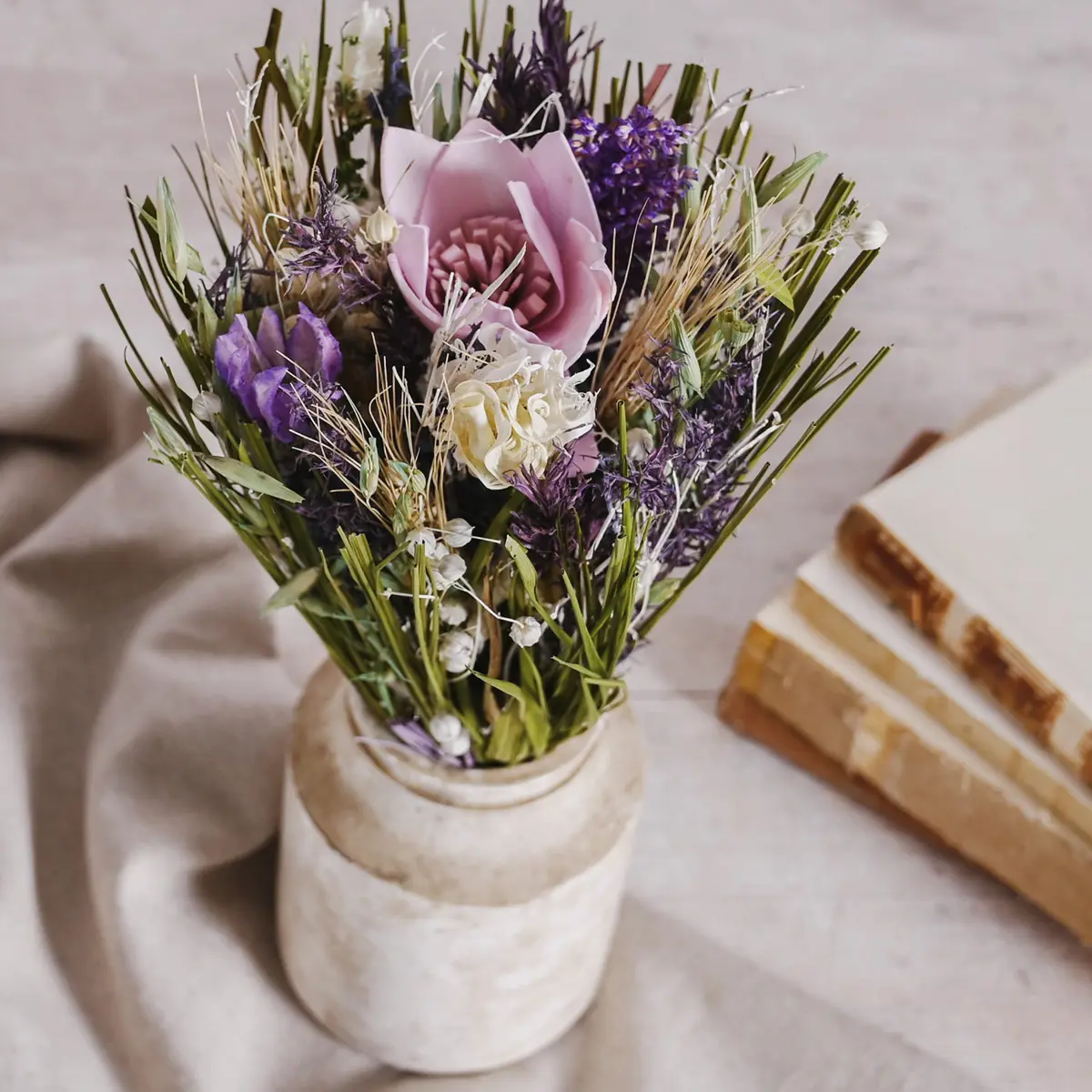 Faux Dried Floral Arrangement Purple