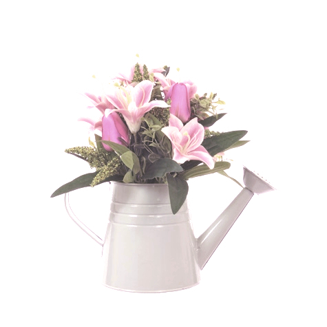 Beautiful watering can arrangement looks just like the real thing, and is perfect for adding a touch of colour to your home.