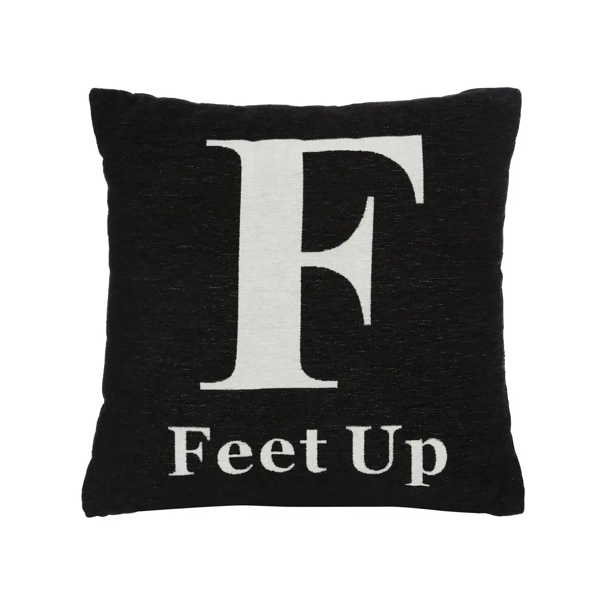Made from 100% polyester with a chenille jacquard finish, the cushion is soft to the touch for a comfortable feel. The hollow fibre filling provides gentle support while helping allergy sufferers. The off white “feet up” wording, with the letter “F” highlighted, stands out beautifully against the black background to create a stylish accent that complements a wide range of interiors.