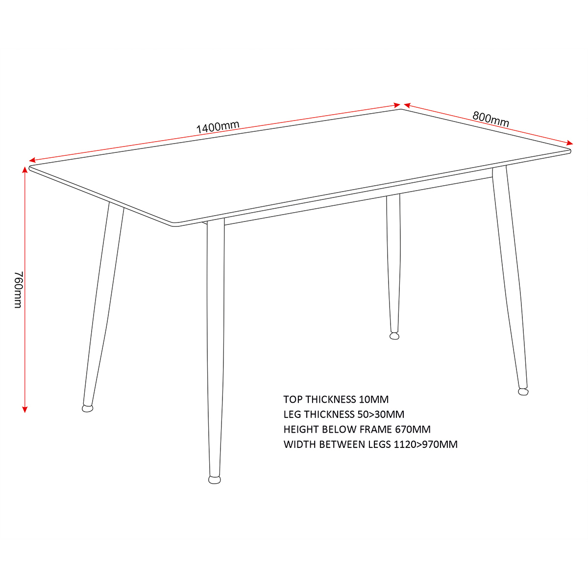 Table Assembled Dimensions: Width: 140 x Depth: 80 x Height: 76 (cm)