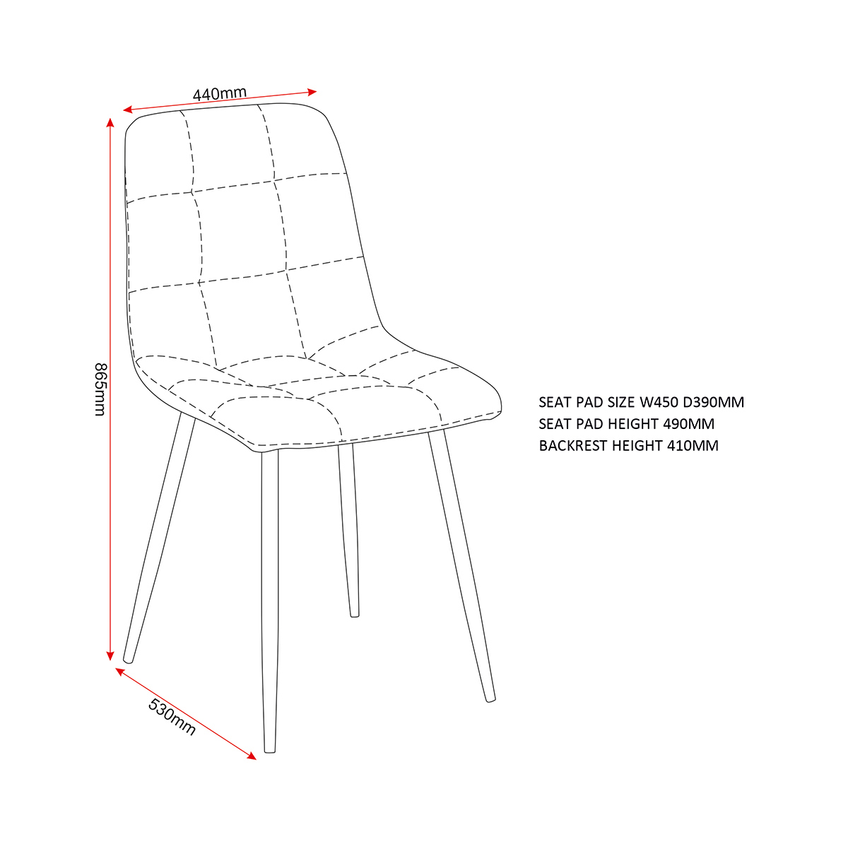 Chair Assembled Dimensions: Assembled Dimensions: Width: 44 x Depth: 53 x Height: 86.5 (cm)