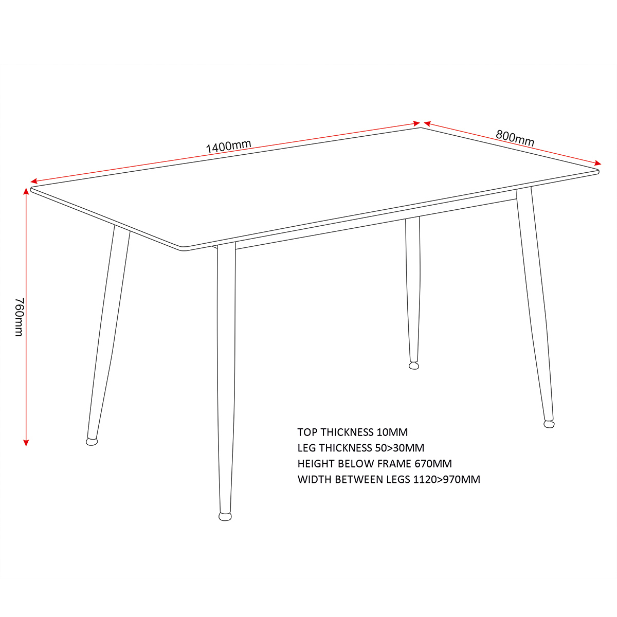 Table Assembled Dimensions: Width: 140 x Depth: 80 x Height: 76 (cm)